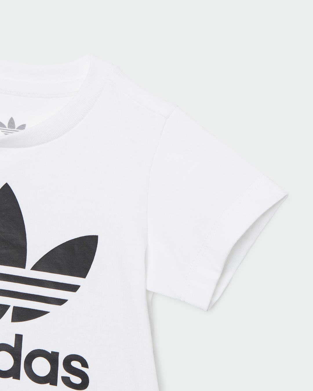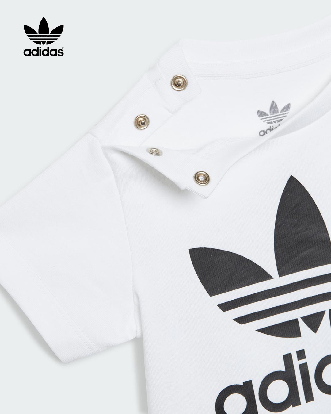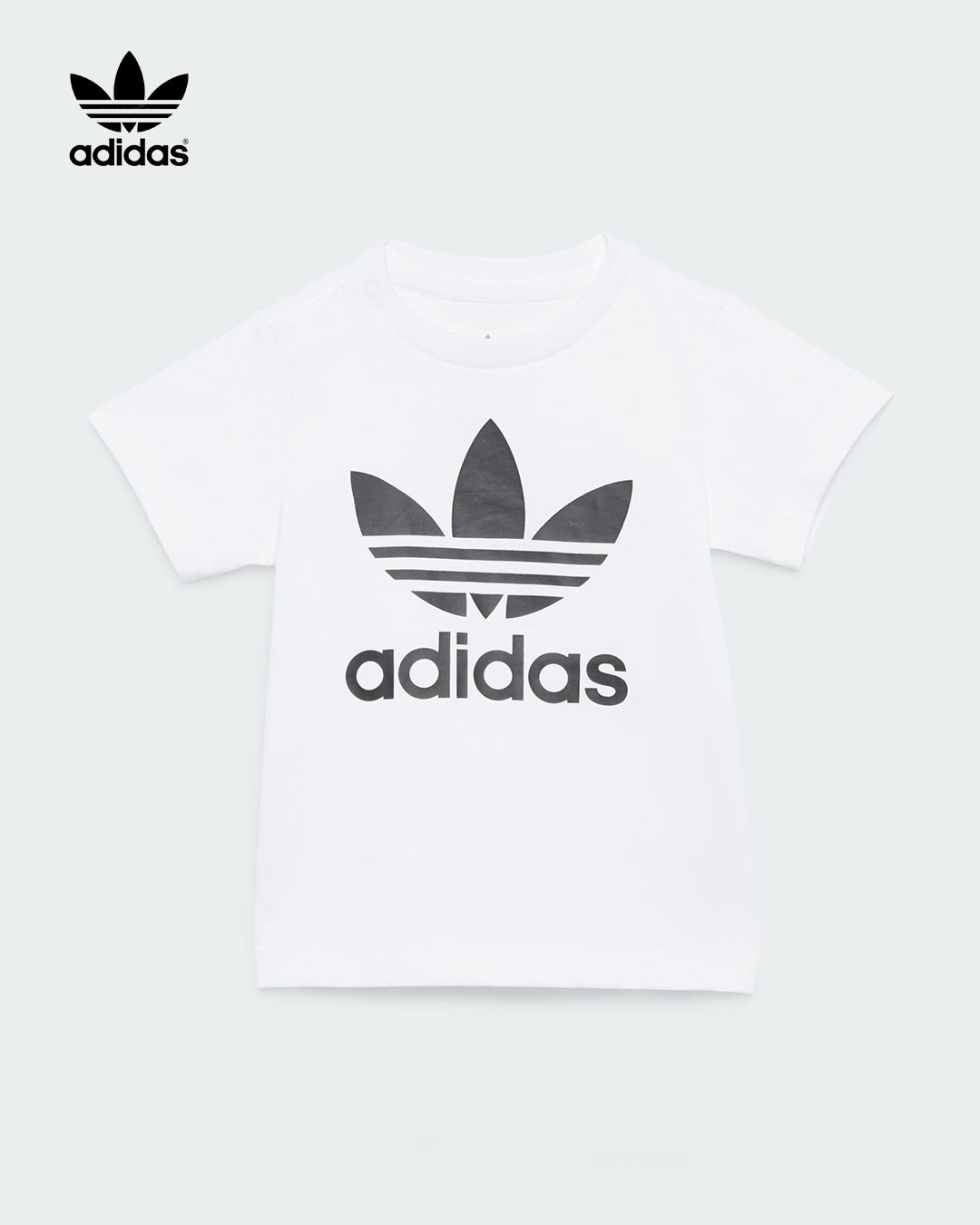 Share your love of sport and classic adidas style with your little one in this infants' t-shirt. Part of the heritage-inspired Adicolor collection, it features an oversized Trefoil logo to connect them to decades of athletic tradition. Soft single jersey and a ribbed crewneck finish off the classic and comfortable look. Regular fit Ribbed crewneck with snap-button shoulder 100% cotton Imported Product color: White Product code: JE0520