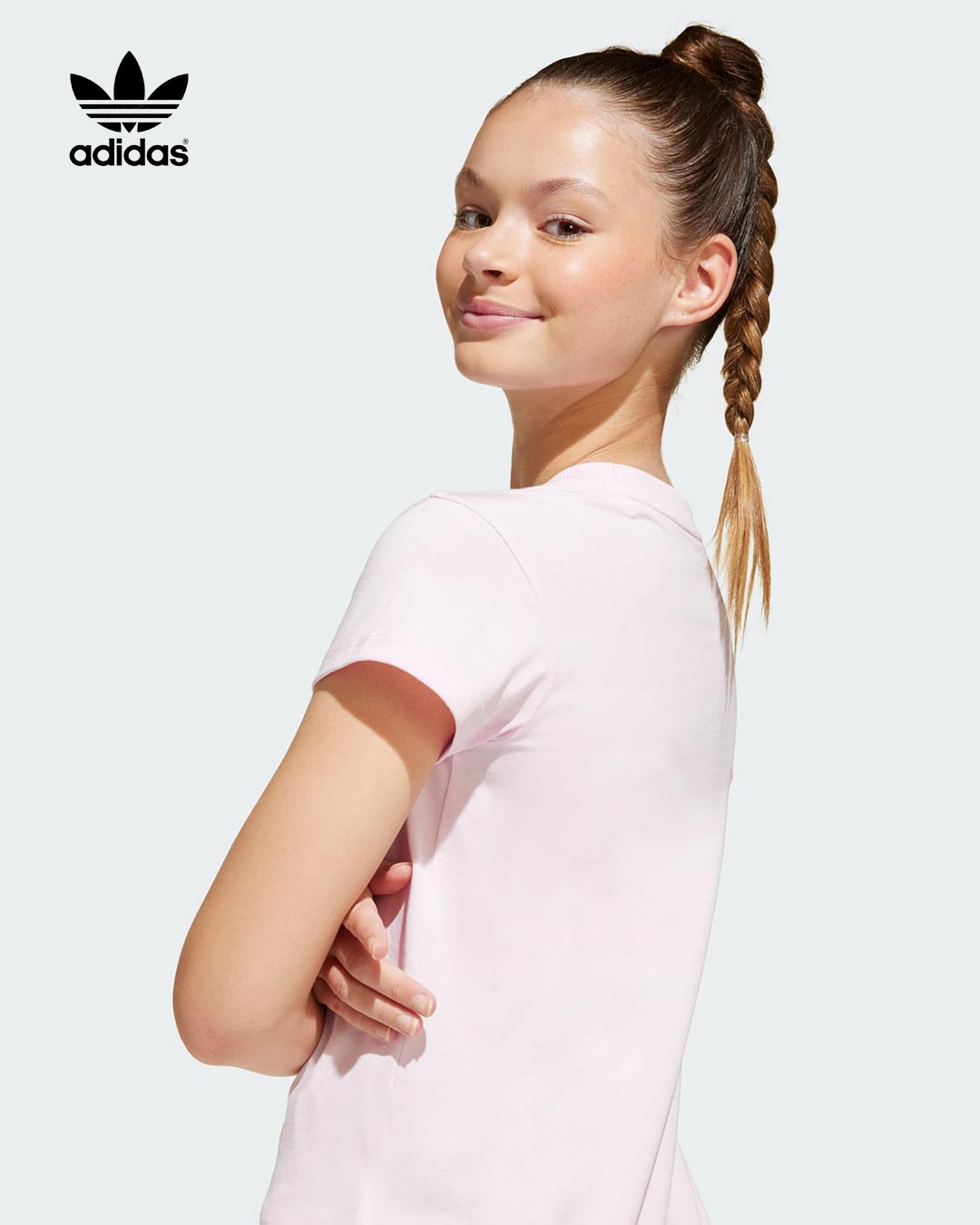 Essentials Tee Kids An all-cotton t-shirt with huge brand pride. This juniors' adidas tee is perfect for any occasion. The soft and breathable fabric keeps you comfortable whether you're working out or just hanging out. A large 3 Bar Logo on the chest adds a sporty vibe. Pair it with your favourite joggers for a casual, athletic look. Product Details Regular fit Crewneck 100% cotton