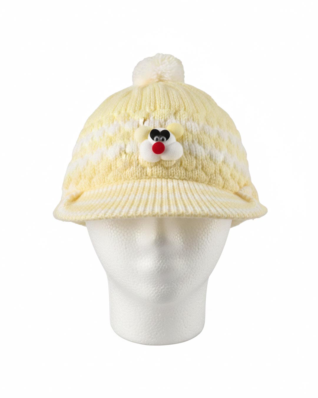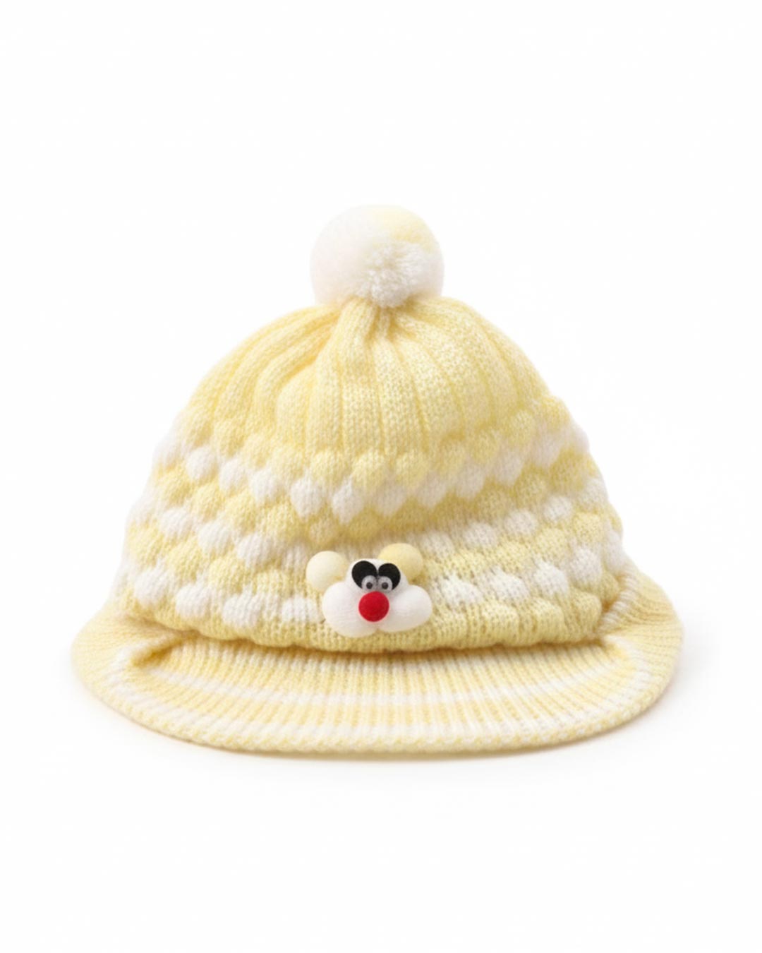 Product Description: Baby's Knitted Bunny Hat Keep your little one cozy and cute this season with this adorable knitted hat! Crafted from soft, warm acrylic yarn, this hat features a charming pink and white popcorn knit texture. It includes a ribbed, striped brim for a snug fit and is topped with a fluffy pink pom-pom. The playful design is finished with a delightful plush bunny face, complete with googly eyes and a red nose. Perfect for chilly days, outings, or as a sweet gift. One size fits most toddlers. Material: Soft, warm knit. Design: Pink and white popcorn knit, striped brim, pom-pom top, plush bunny face. Care: Hand wash cold, lay flat to dry.