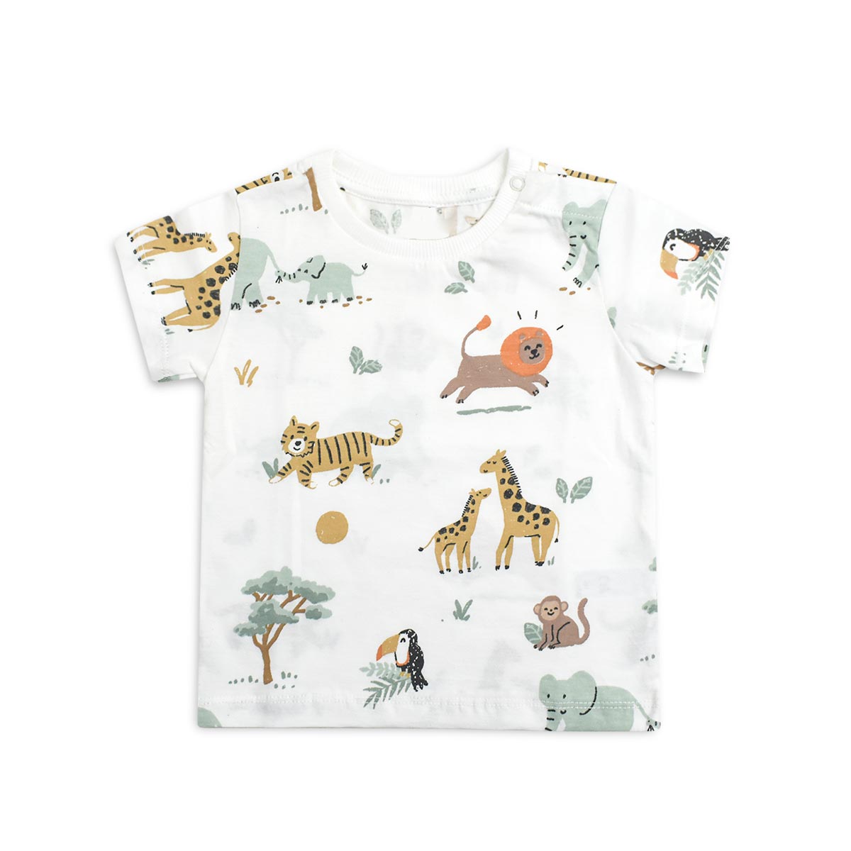 BRANDED NATURAL WHITE ANIMAL PRINTED T-SHIRT