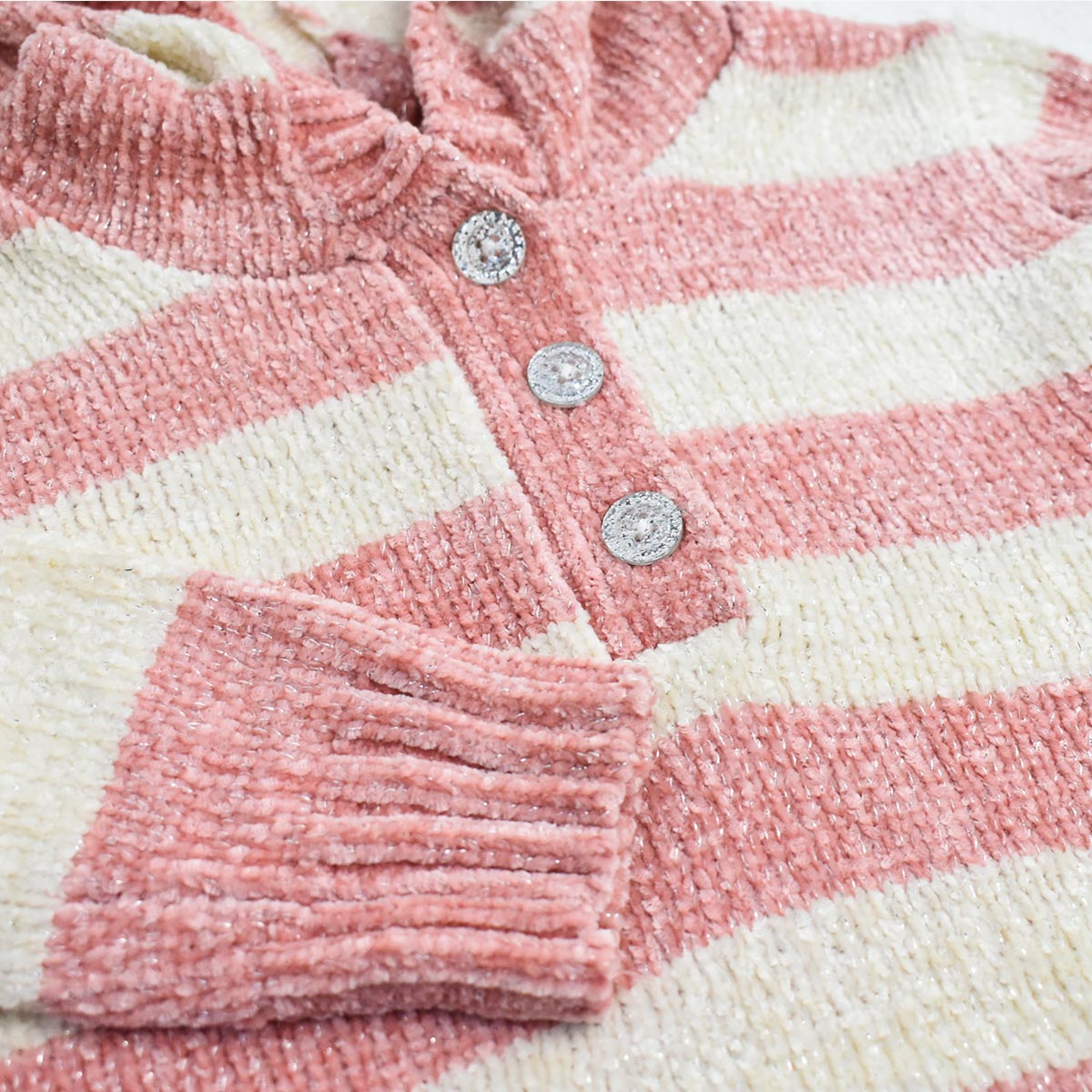 BTWEEN DARK PINK STRIPED OVERALL GLITTER HOODED SWEATER