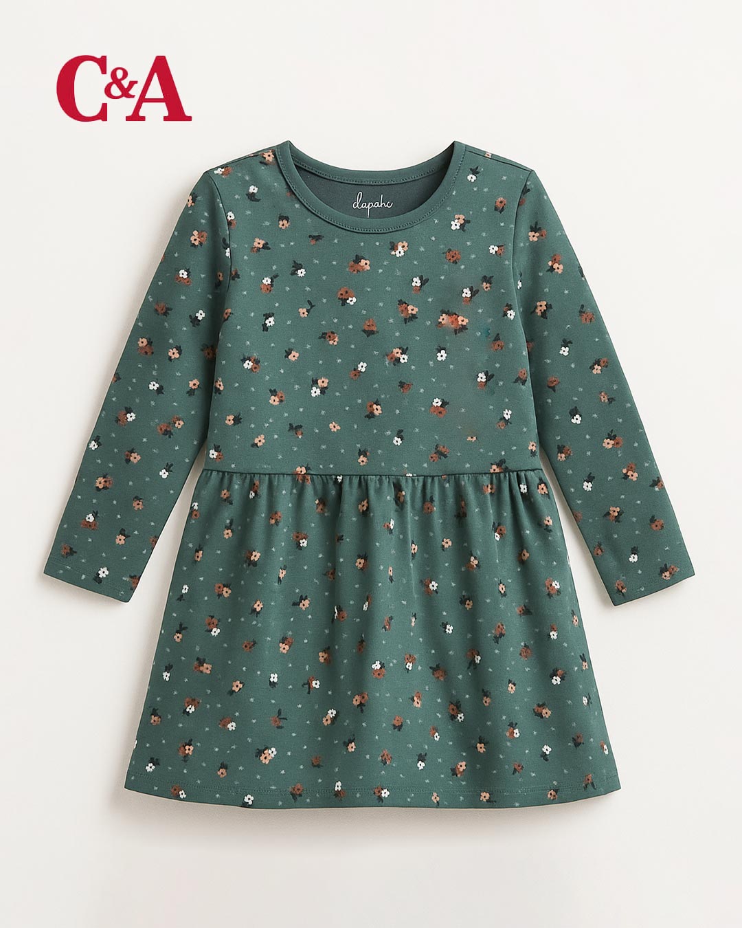 C&A GREEN FLORAL PRINT LONG SLEEVE DRESS