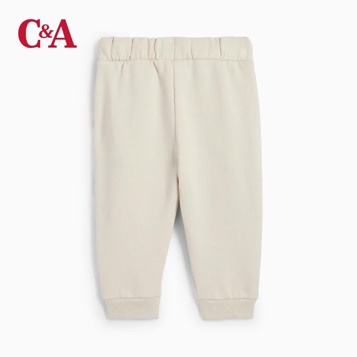 Soft sweat baby joggers with contrasting decorative piping and ribbed sections. Elasticated waistband with mock drawstring, side slash pockets and ribbed cuffs on the leg openings.