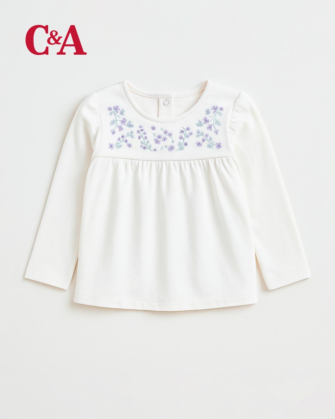 Delicate, timeless, and made for everyday comfort, this baby girl top is crafted in a soft cream tone with charming floral embroidery across the chest. Designed with long sleeves and a gently gathered waist, it offers a relaxed, airy fit that’s perfect for all-day wear. The subtle pastel embroidery adds a sweet, elegant touch, while the soft fabric feels gentle against delicate skin. Finished with a convenient back button closure for easy dressing, this top is ideal for casual outings, cozy days at home, or layering during cooler weather.