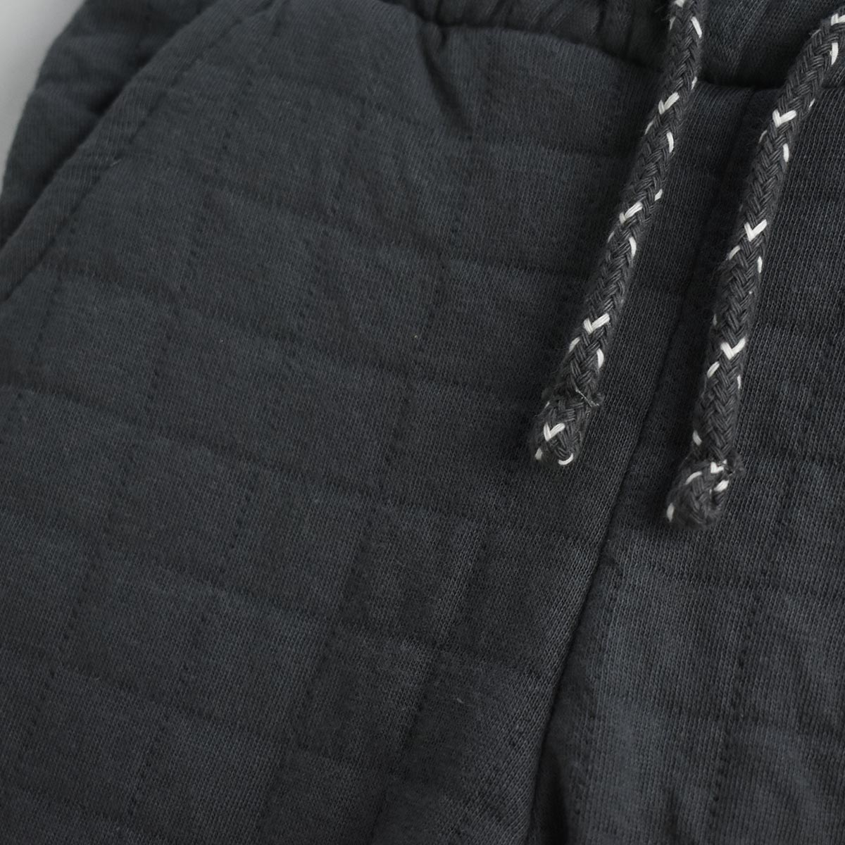 Baby joggers in lightweight sweatshirt fabric with quilted seams. Drawstring waistband, two slash pockets and one back pocket. Ribbed cuffs.