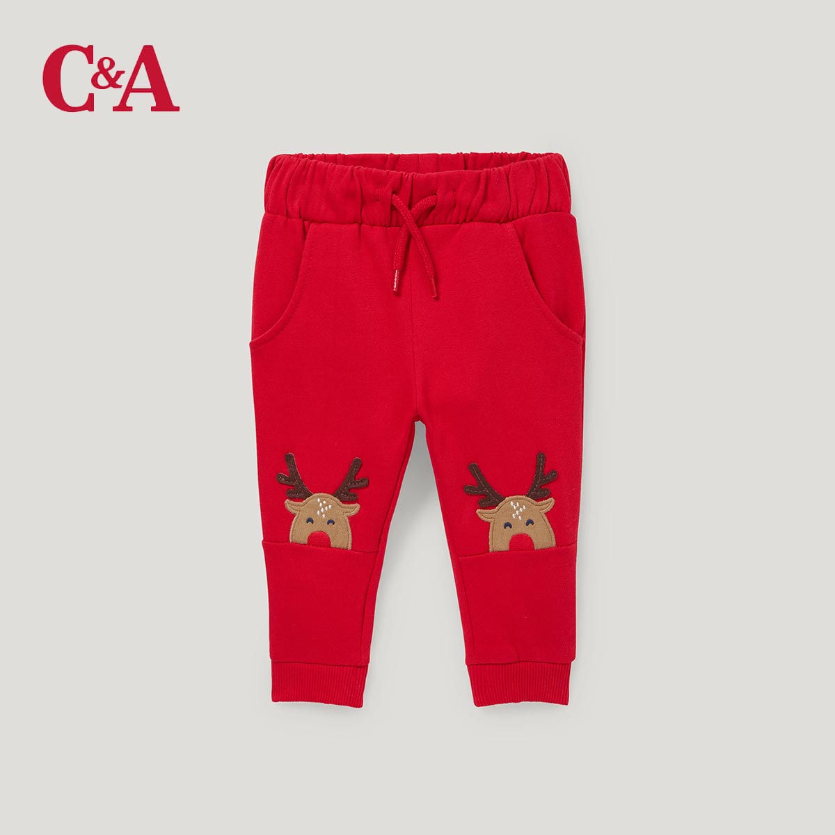 C&A RED FLEECE DEER APPLIQUE JOGGER TROUSER