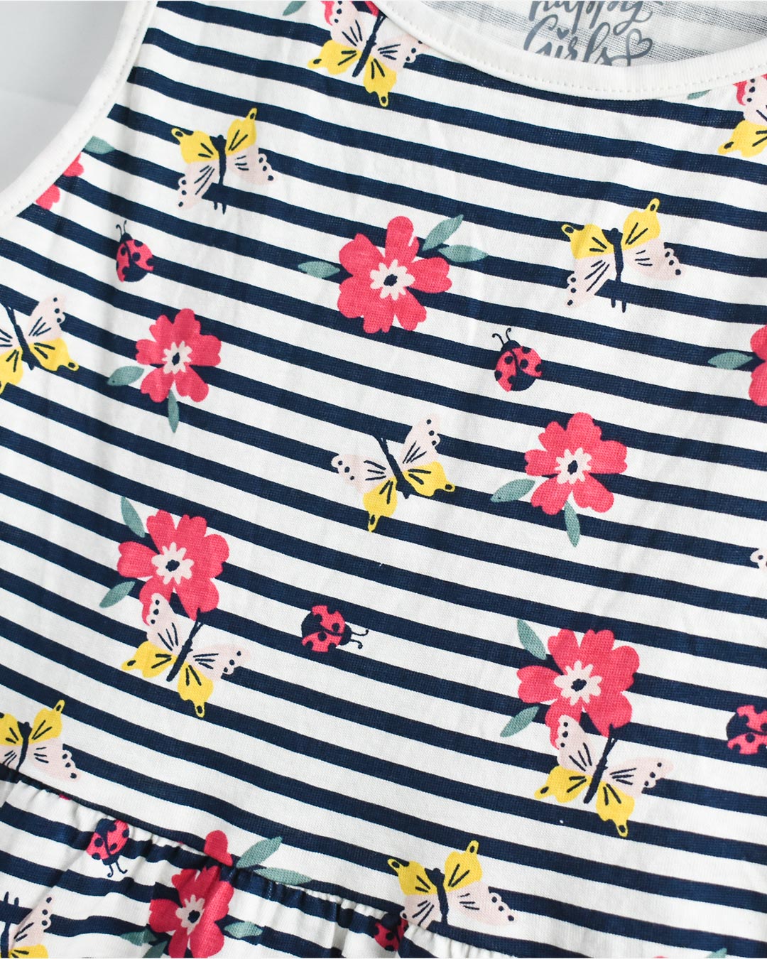 Description & fit Comfortable sleeveless dress in soft, patterned cotton jersey with a gathered seam at the waist and gently flared skirt.