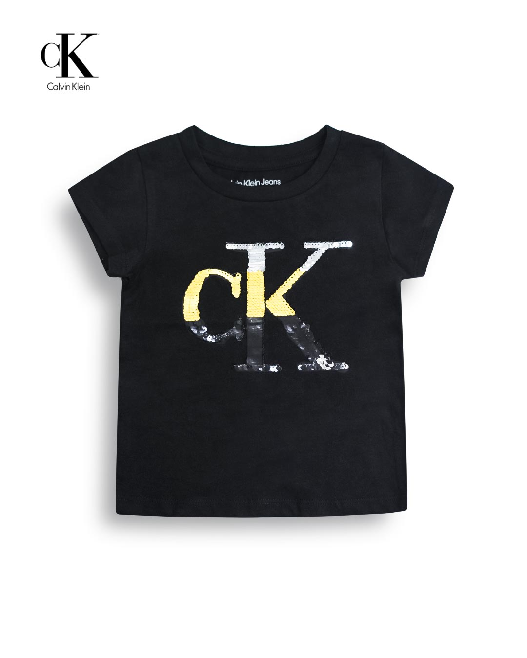 About this item Update her casual wardrobe with a logo tee from Calvin Klein, featuring flip-sequins in signature style. Cap sleeve Round-neck, fitted Tagless interior; flip-sequin logo