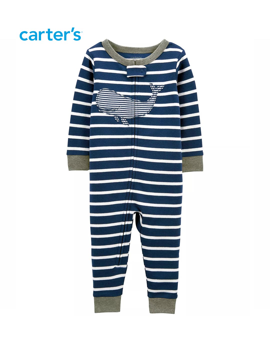 Crafted in soft cotton with a cute print, this 1-piece gets him ready for bed in one easy zip Carter's cotton pajamas are not flame resistant. But don't worry They're designed with a snug and stretchy fit for safety and comfort.