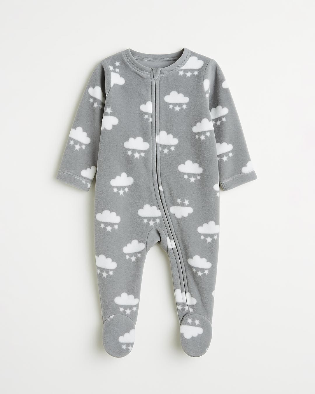 Wrap your little one in cozy comfort with our Grey Cloud Print Baby Fleece Romper – a must-have for chilly days and snuggly nights. Crafted from ultra-soft fleece, this full-length romper features a charming all-over cloud and star print in white against a neutral grey base, making it as adorable as it is functional.