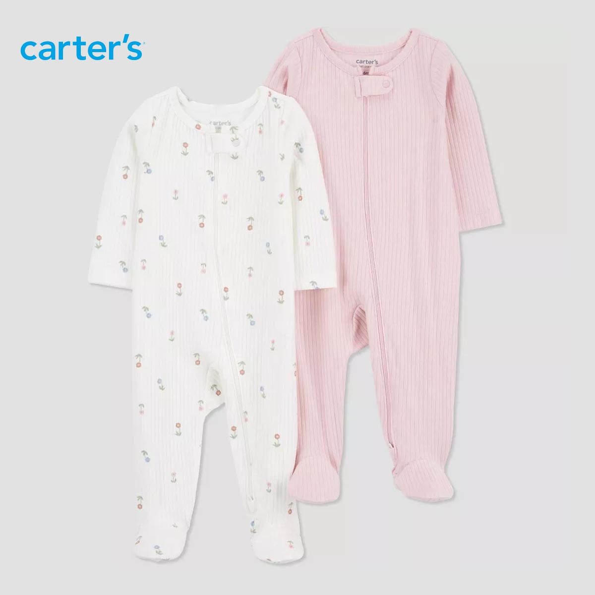 Fit & style 2-pack includes 1 Pink and 1 Ivory floral print Sleep and Play Crew neck with snap tab fastening Long sleeves Two-way zipper Footed ends Rib-knit texture 95% cotton, 5% elastane Imported Machine washable