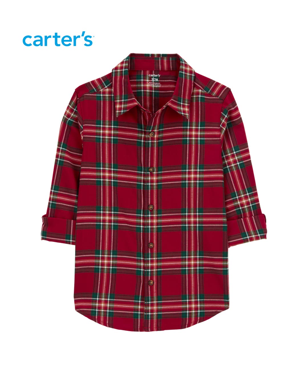 CARTERS RED PLAID BUTTON DOWN SHIRT