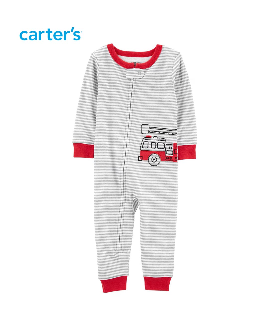 Super cute and comfortable, the Carter's white striped firefighter onesie pajamas are the perfect choice to make your child even more adorable. Made of cotton, they guarantee a soft touch against the skin, and are safe thanks to their zipper and martingale closure, preventing any injury to little fingers. The charming fire truck print adds a touch of charm. Enjoy!