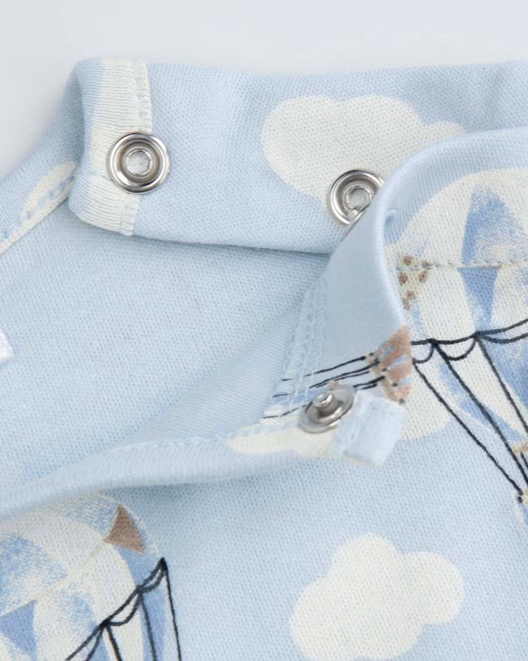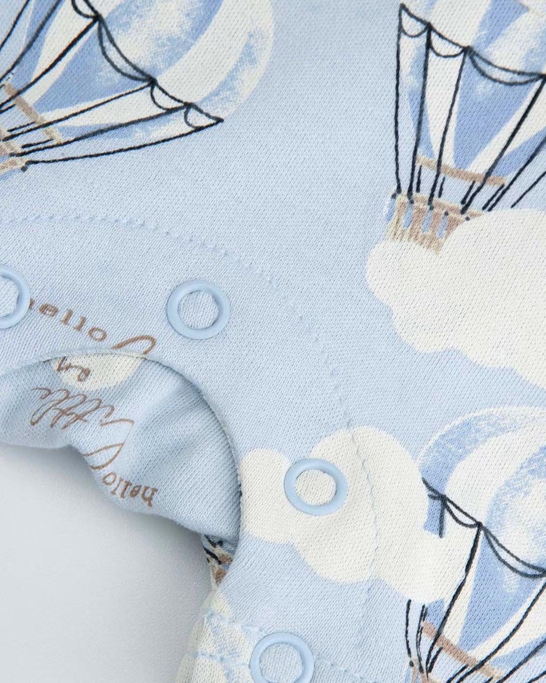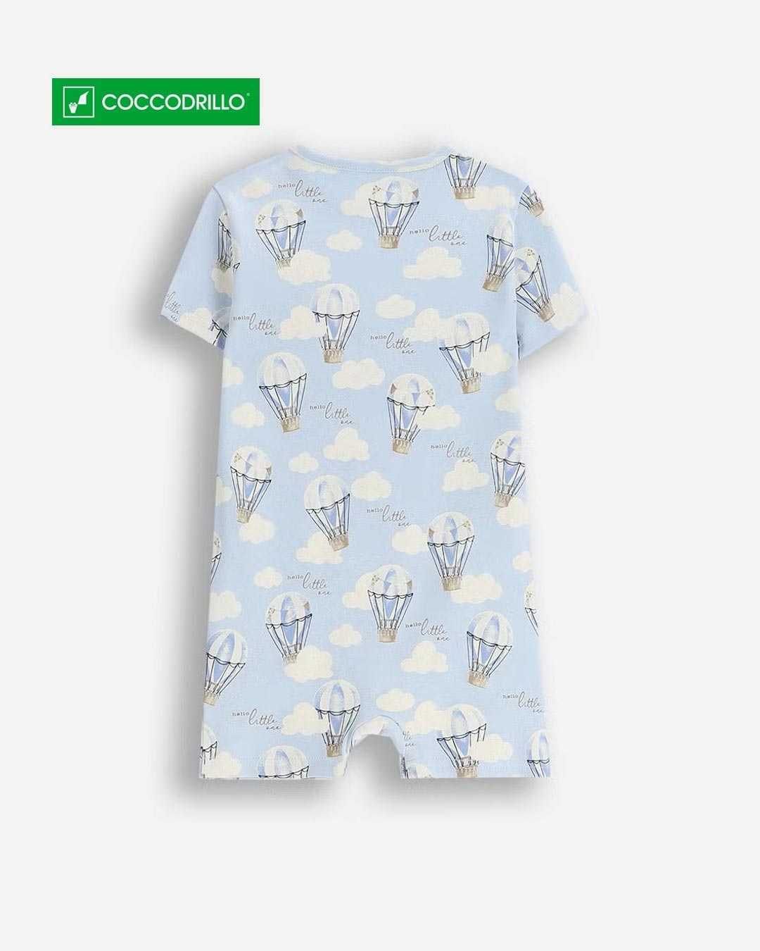 Short-sleeved romper blue with balloon print across the entire surface Model: WC5404302USB-036 Collection: UNDERWEAR SPECIAL BOY Gender: Boy Sleeve type: Short sleeve Leg type: Short leg Neckline: Rounded Closure and adjustment: Snap buttons Material type: Fine cotton Motif