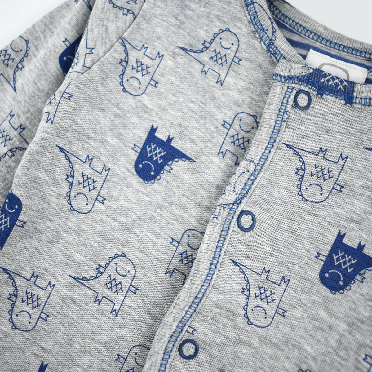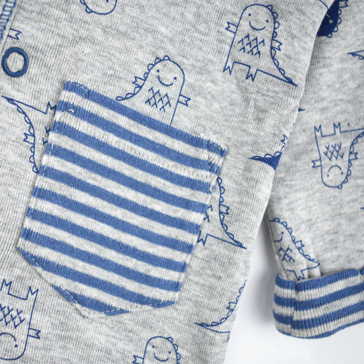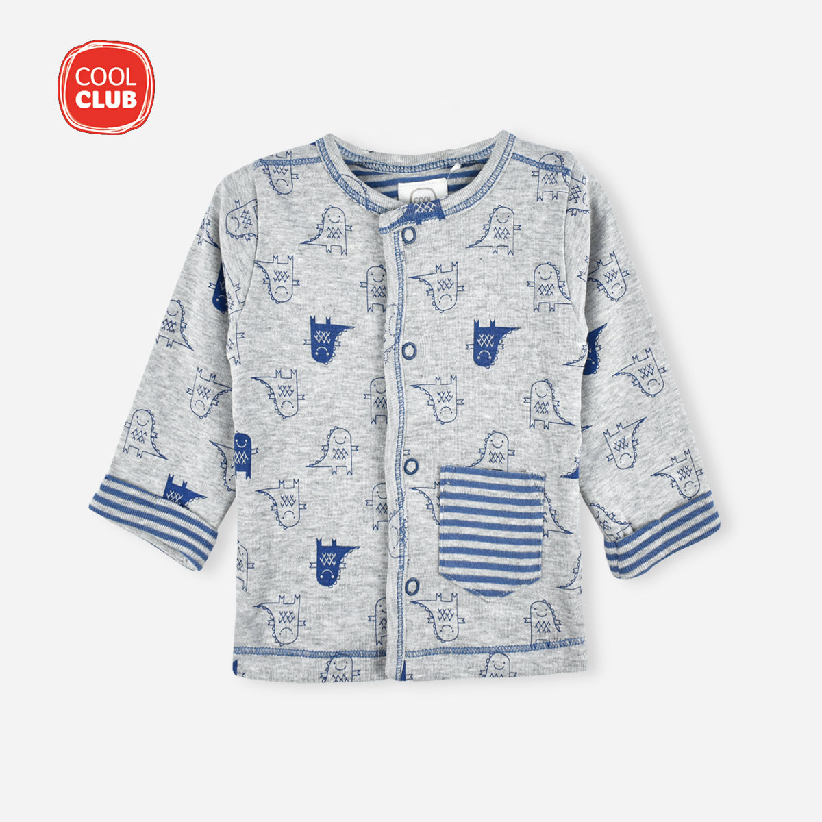 Organic cotton fabric. Printed Design.  Rounded neck. Long sleeve. Side patch pocket. Button fastening on the front section.