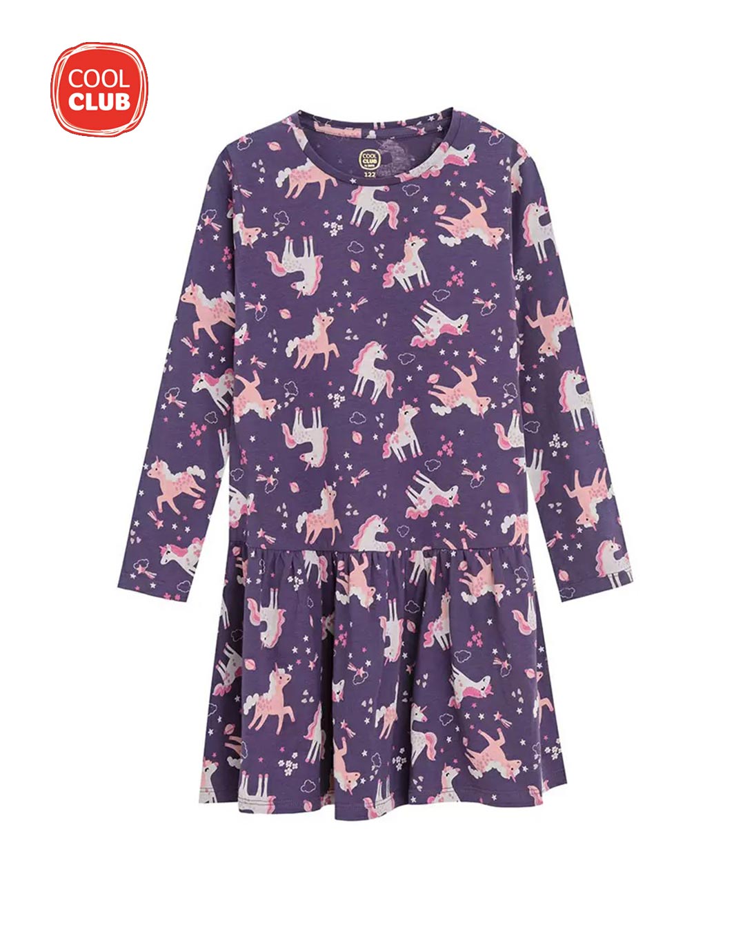 COOL CLUB PURPLE LONG SLEEVE UNICORN PRINT DRESS