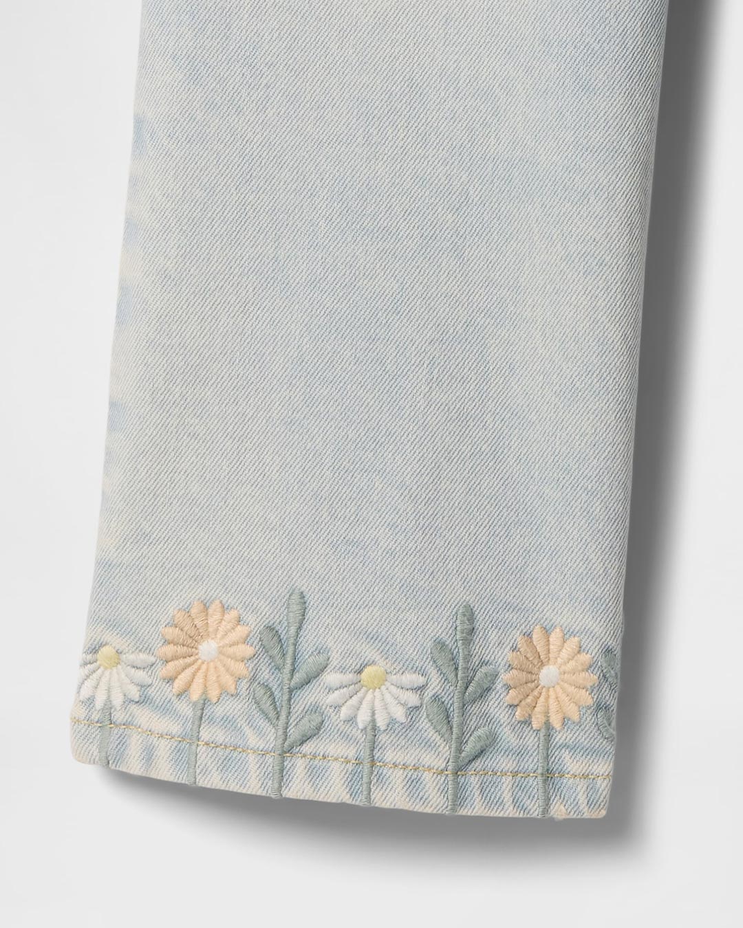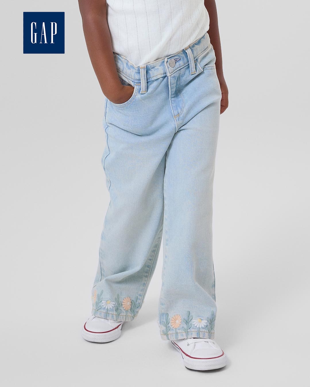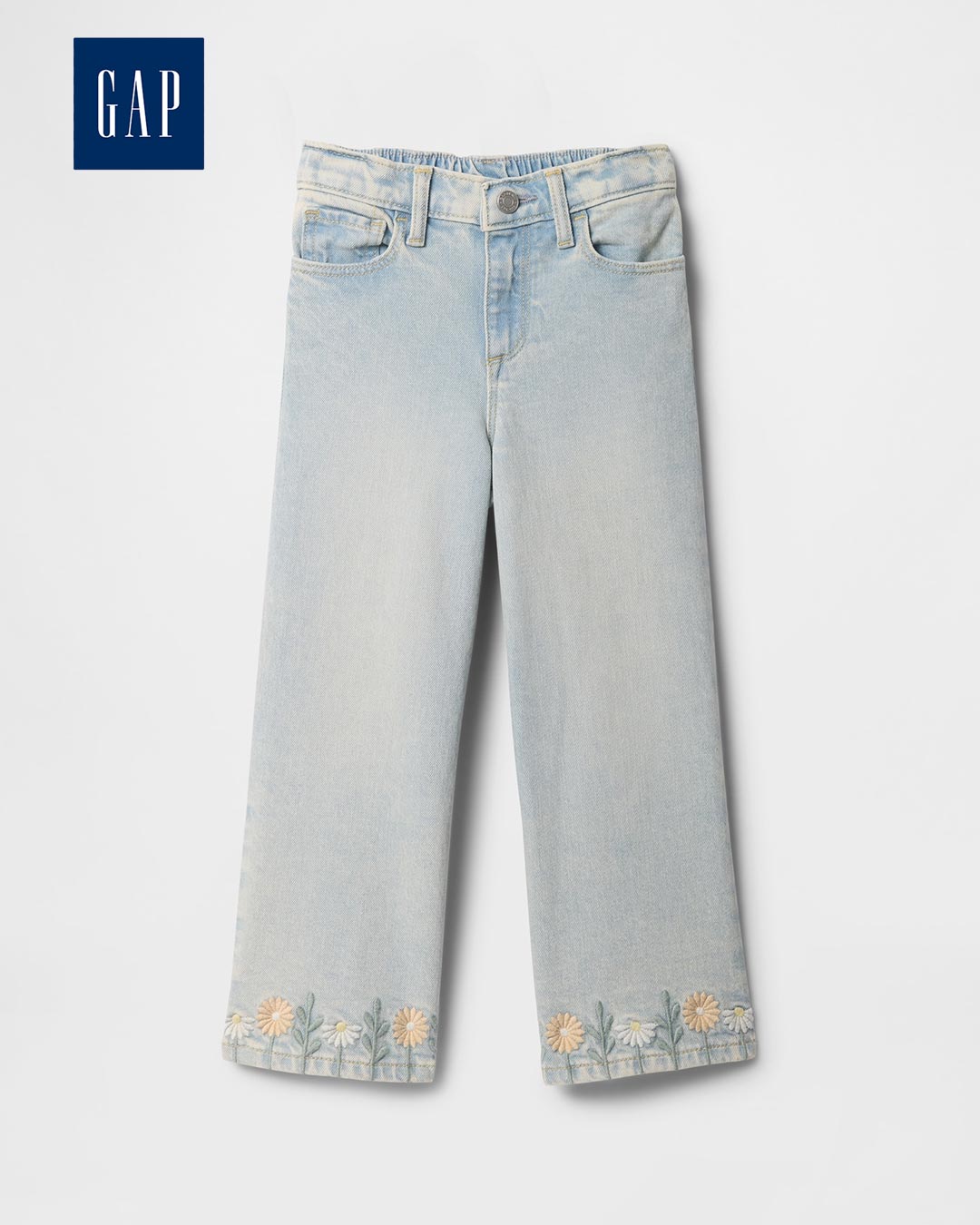 Product Details This style is made with 5% recycled cotton. Compared to virgin materials, using recycled materials helps to reduce resource use and waste. This product is part of our Washwell program, which uses at least 20% less water as compared with conventional wash methods. We’ve saved over a billion liters of water through Washwell since 2016. Low-stretch denim. Light indigo wash with fading. Snap closure (sizes 2T-5T have hook & bar closure and zip fly). Classic five-pocket styling. Floral embroidery at legs. #748461