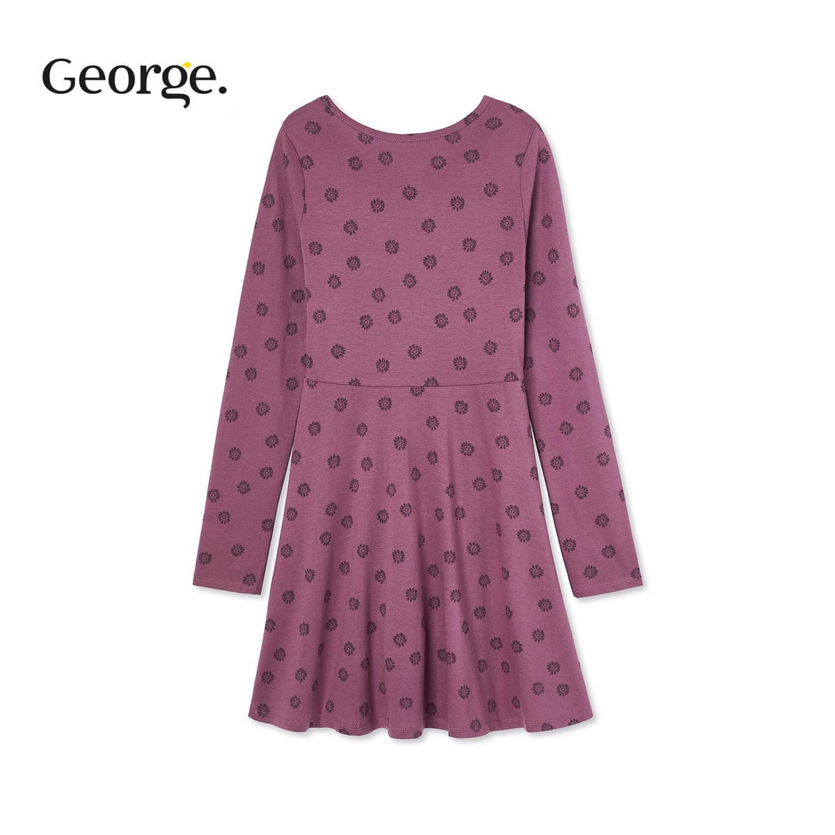Add some fun style to your little one's wardrobe with the George girls' skater dress. Made from a comfortable 100% cotton jersey knit, this dress is perfect for everyday wear and special occasions. It features a round neckline, long sleeves and an all-over print that's perfect for school and weekend activities. With a ruched waistband and fit and flare design, it's the perfect pairing with your daughter's favourite sneakers for a casual look. • 100% cotton (BCI) • Jersey knit • Round neckline • Long sleeves • Ruched waistband • All-over print • Fit and flare