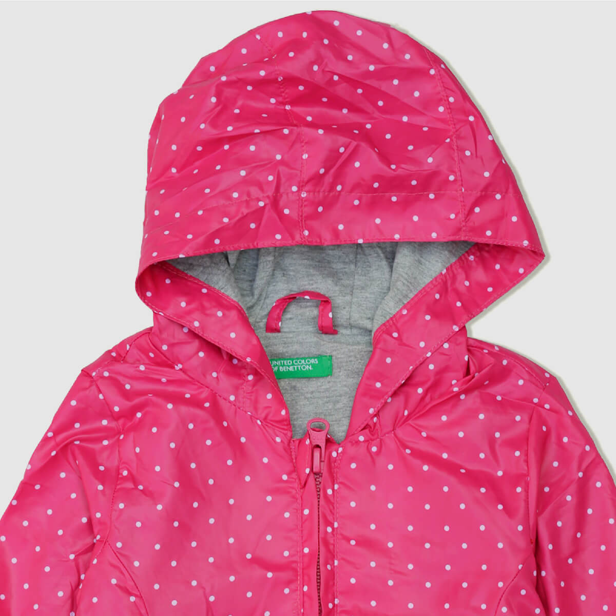 GIRLS PINK DOTTED WINDBREAKER WITH HOOD