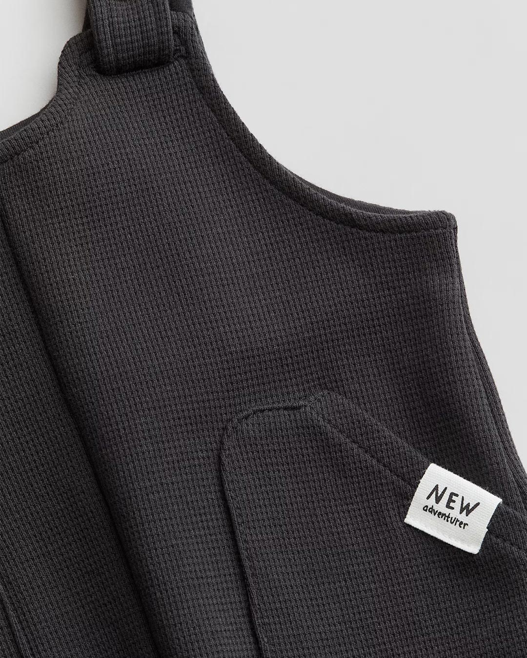 Dungarees in waffled cotton jersey. Featuring a round neckline, adjustable shoulder straps with a button fastener and patch front pockets with diagonal openings.