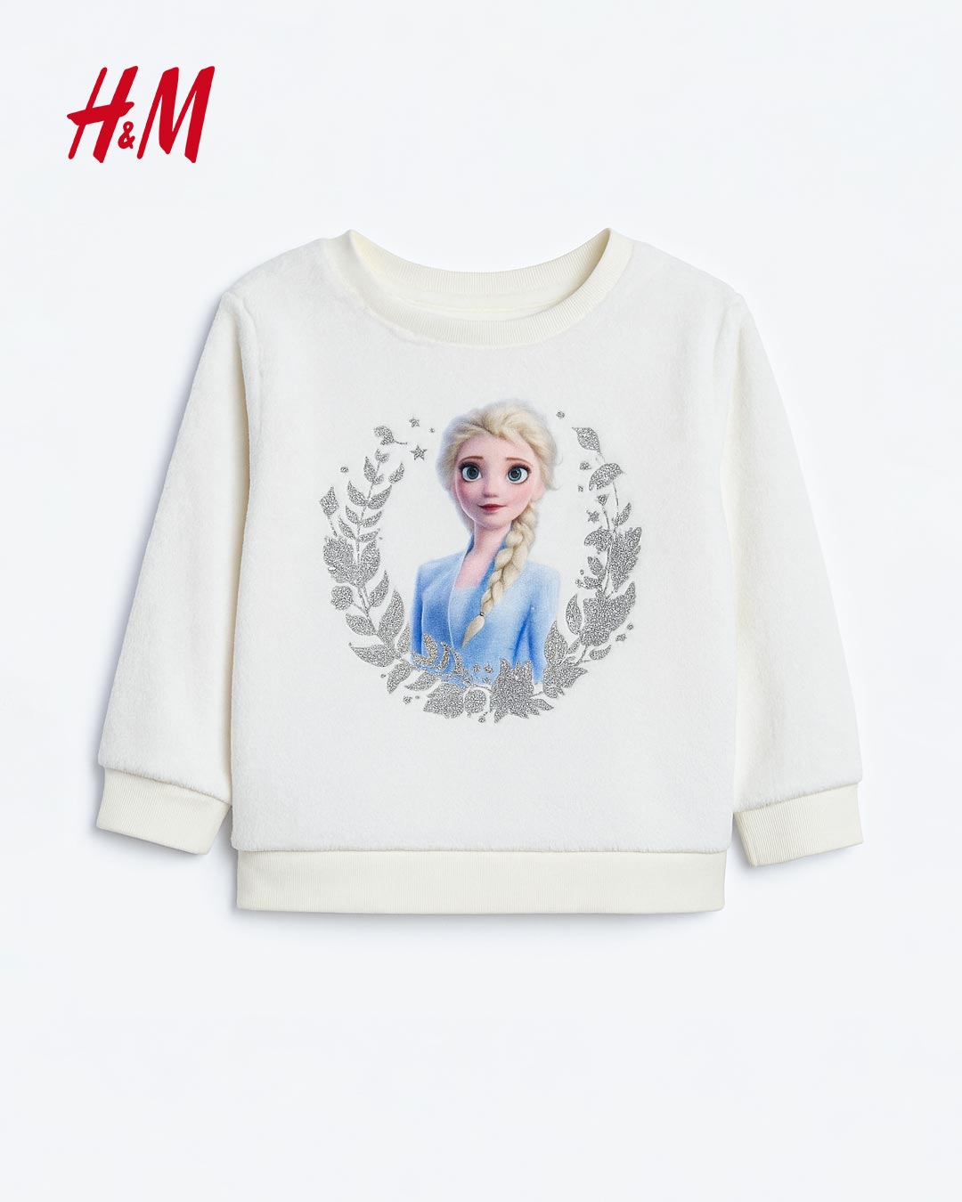 Keep your little one cozy and stylish with this adorable Frozen sweatshirt featuring Elsa in a dreamy watercolor design. Made from soft fleece fabric, it offers warmth and comfort for everyday wear. The front is beautifully decorated with Elsa surrounded by shimmering silver glitter leaves and stars, adding a touch of magic to every outfit. Designed with ribbed cuffs, neckline, and hem for a snug fit, this sweatshirt is perfect for winter days, casual outings, or as a cozy layer at home.