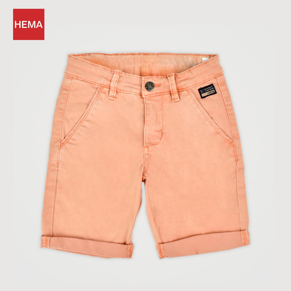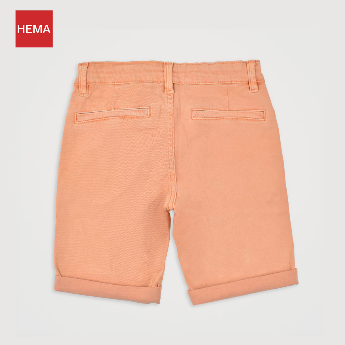 Light orange shorts for boys, with Zip and Button fastening at the waist.