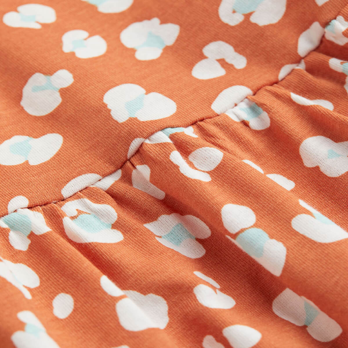 Sleeveless dress in patterned cotton jersey with a gathered seam at the waist and flared skirt. Composition Cotton 100% Art. No.0870530100