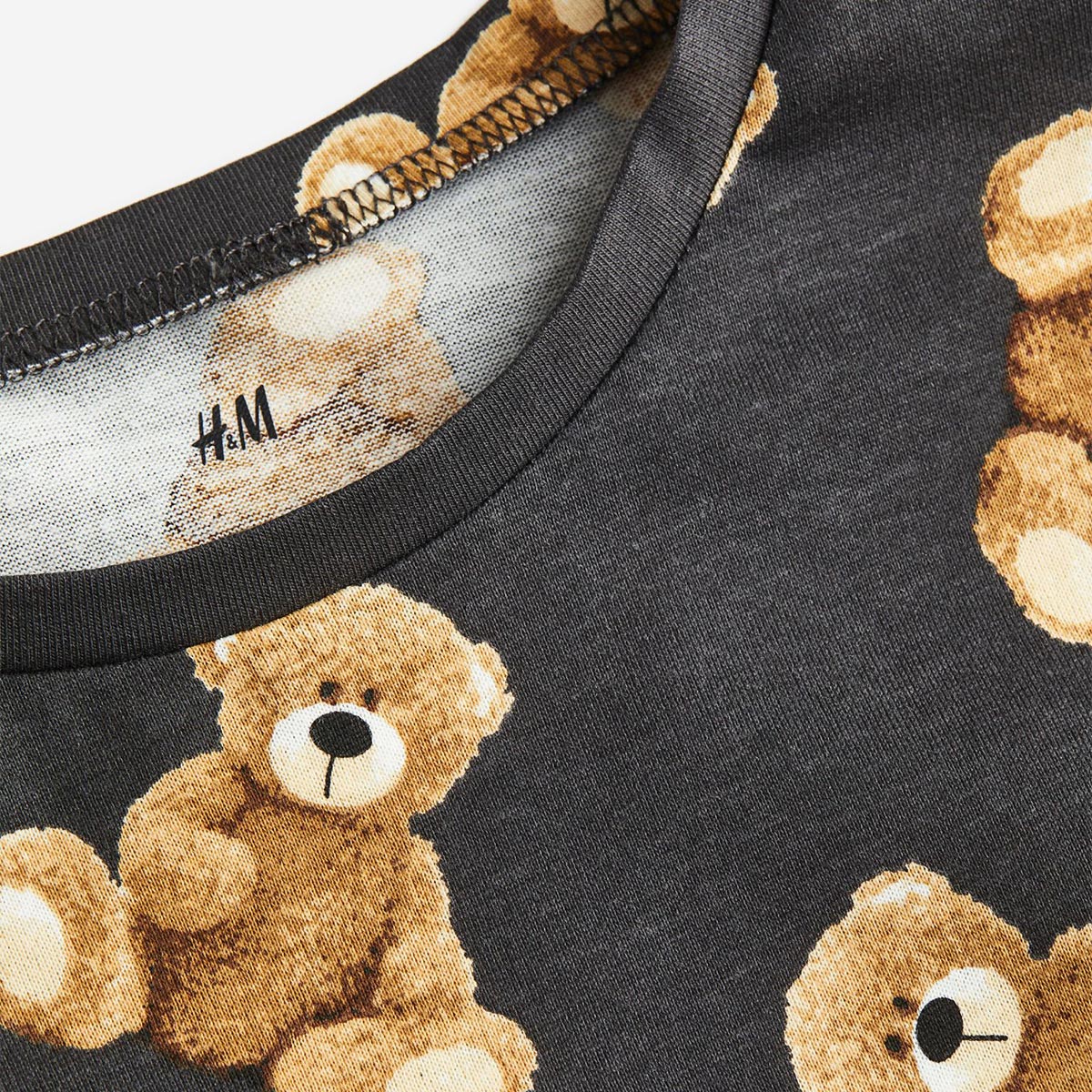 H&M DARK GREY TEDDY BEAR T-SHIRT