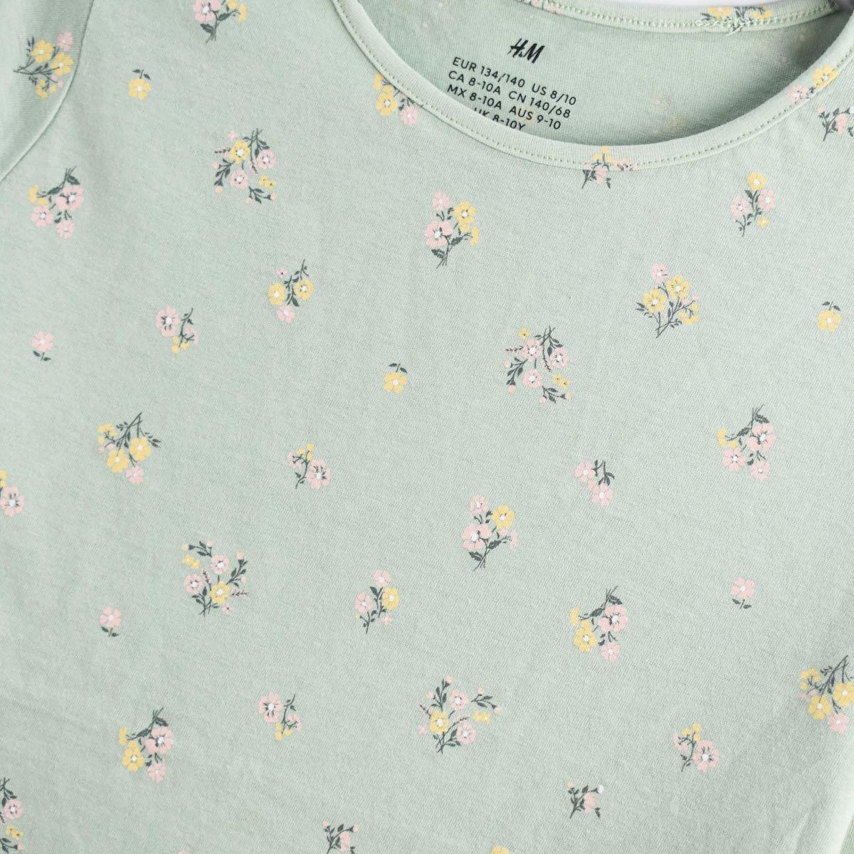 H&M GREEN LONG SLEEVE FLORAL PRINTED T-SHIRT