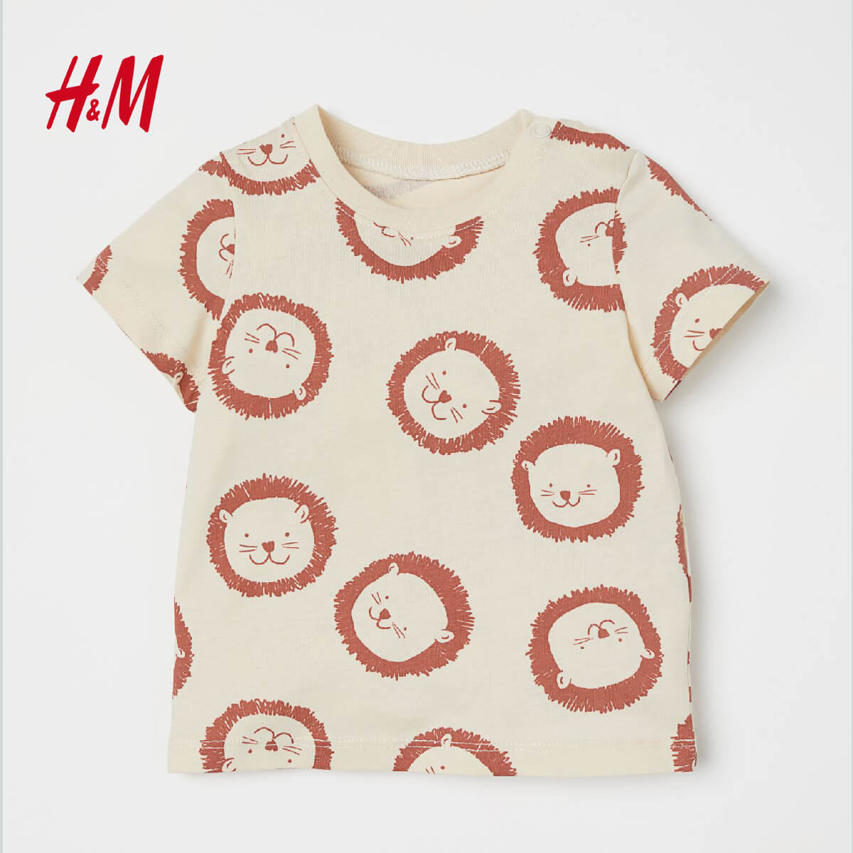 HM LIGHT BEIGE LIONS PRINTED T-SHIRT