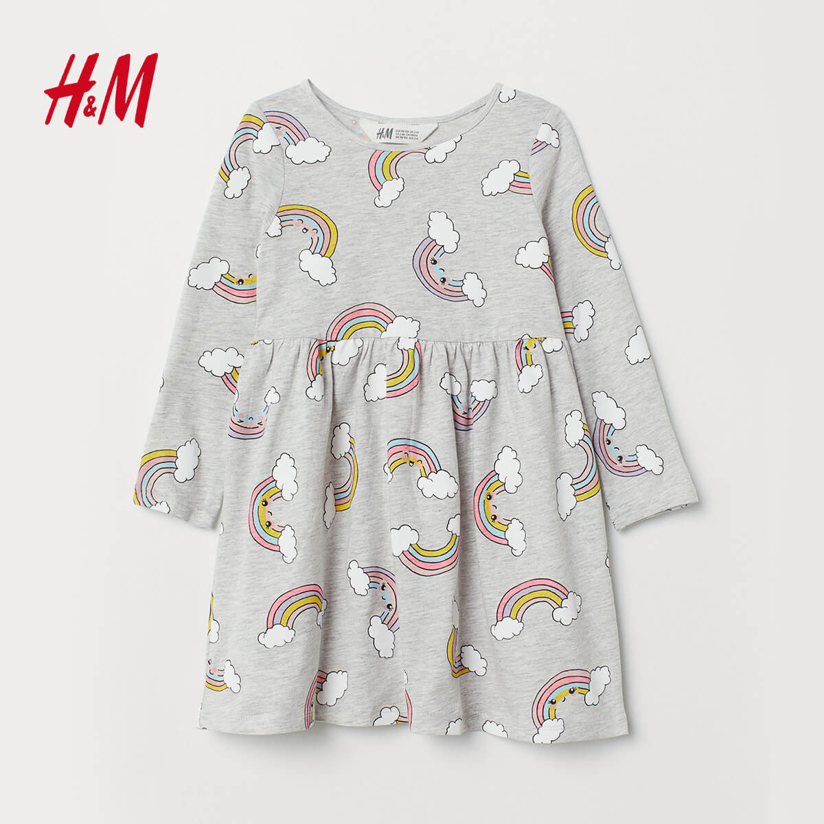 H&M LIGHT GRAY RAINBOW PRINTED JERSEY DRESS