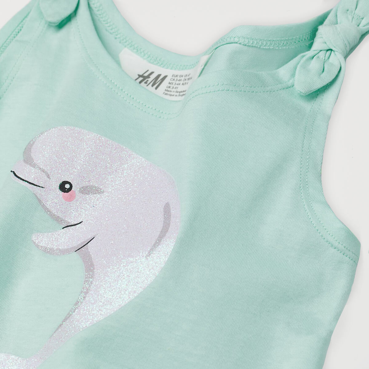 A vest top in soft, printed cotton jersey. It comes with a round neckline and a decorative bow on each shoulder strap.