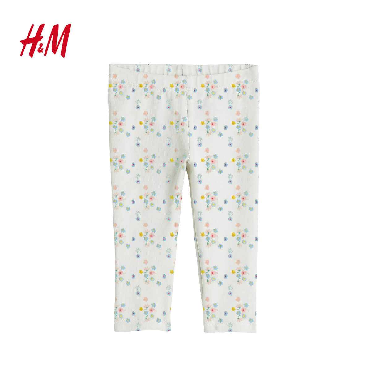 HM OFF WHITE FLORAL RIBBED LEGGING