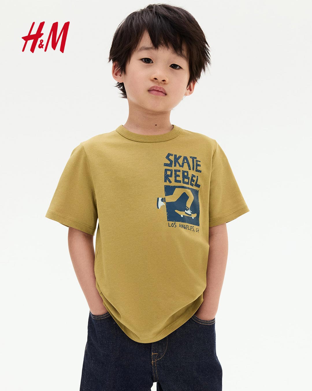 H&M OLD YELLOW SKATE RABEL PRINTED T-SHIRT