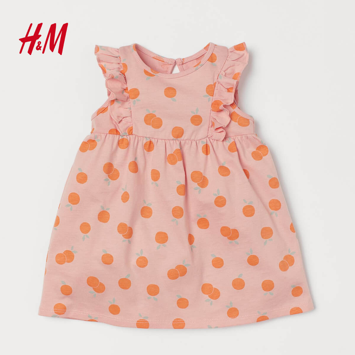 H&M POWDER PINK ORANGES FLOUNCE TRIMMED JERSEY DRESS