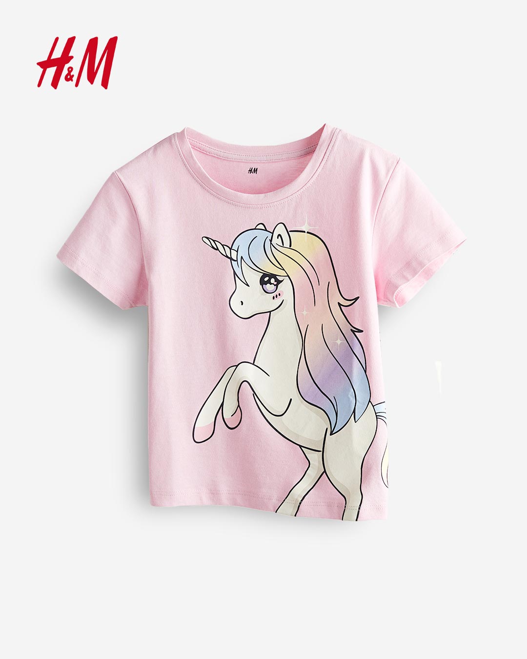 New Arrival Short-sleeved tops in soft cotton jersey with a narrow trim around the neckline. Article number: 1066782014 Feature Descriptive Length Regular length,Short sleeve License Item Style Round neck Concept Quality Fit Regular fit Product Safety Warning Caution! Small parts can be swallowed if dropped. Sleeve length Short sleeve Function Description Light pink/Unicorns