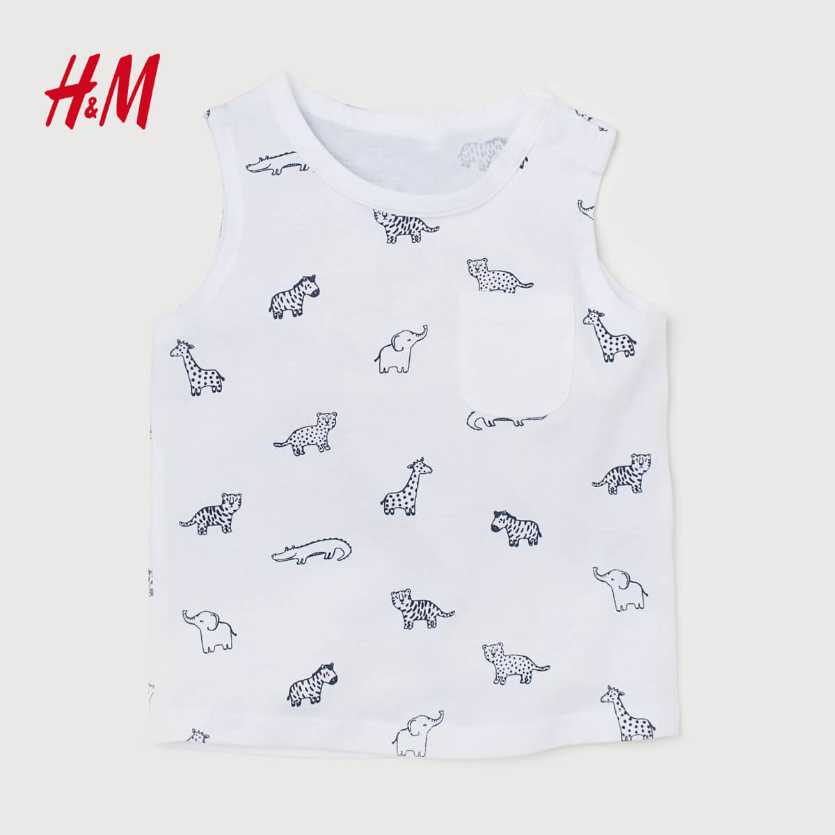 H&M WHITE ANIMALS PRINTED VEST TOP