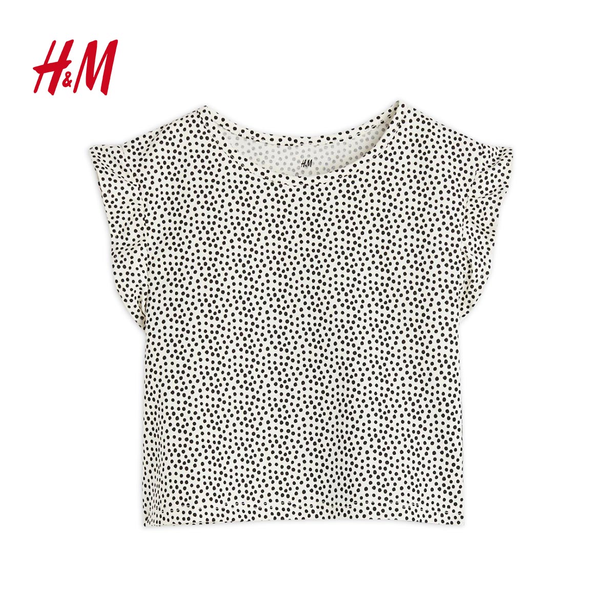 H&M WHITE SPOTTED COTTON JERSEY TOP