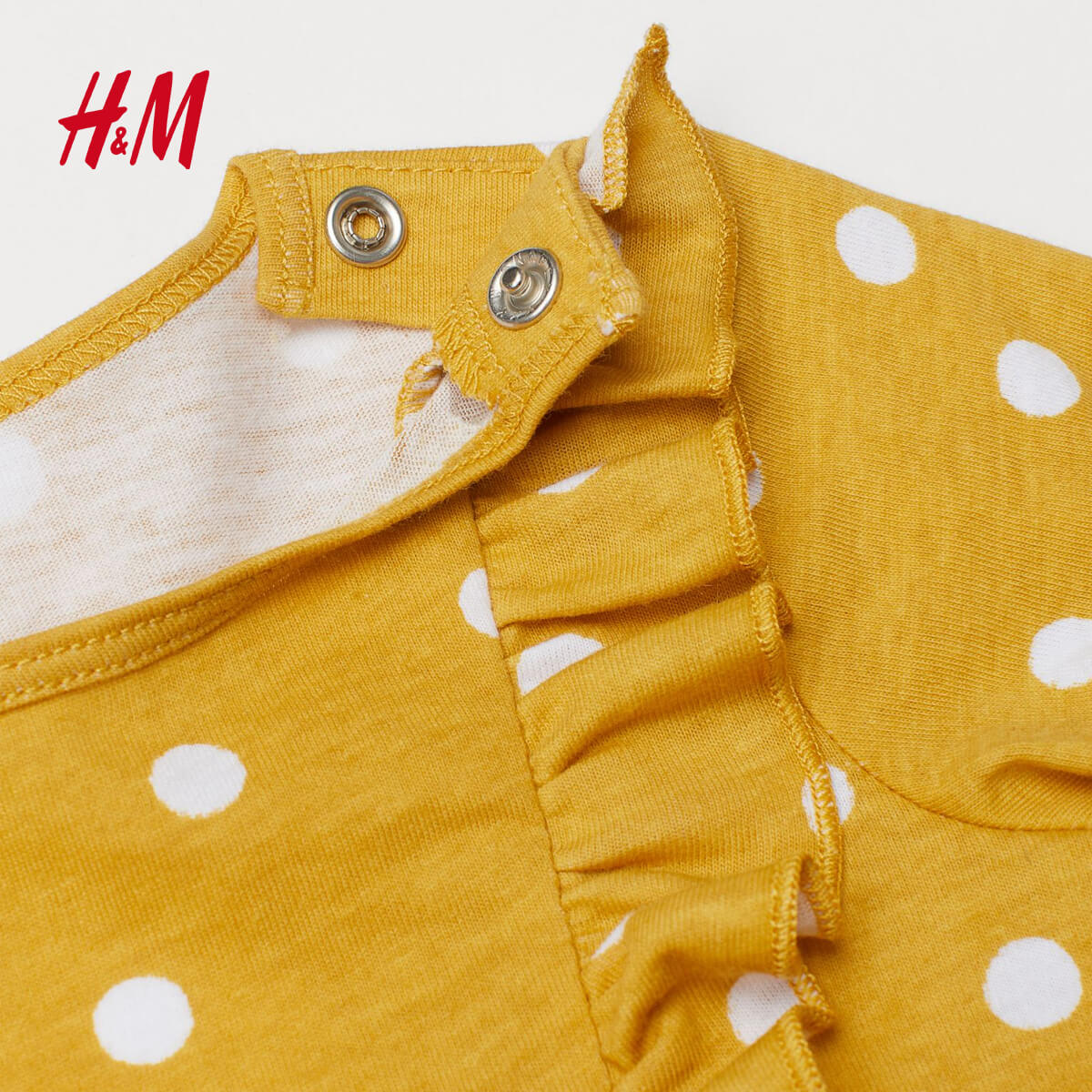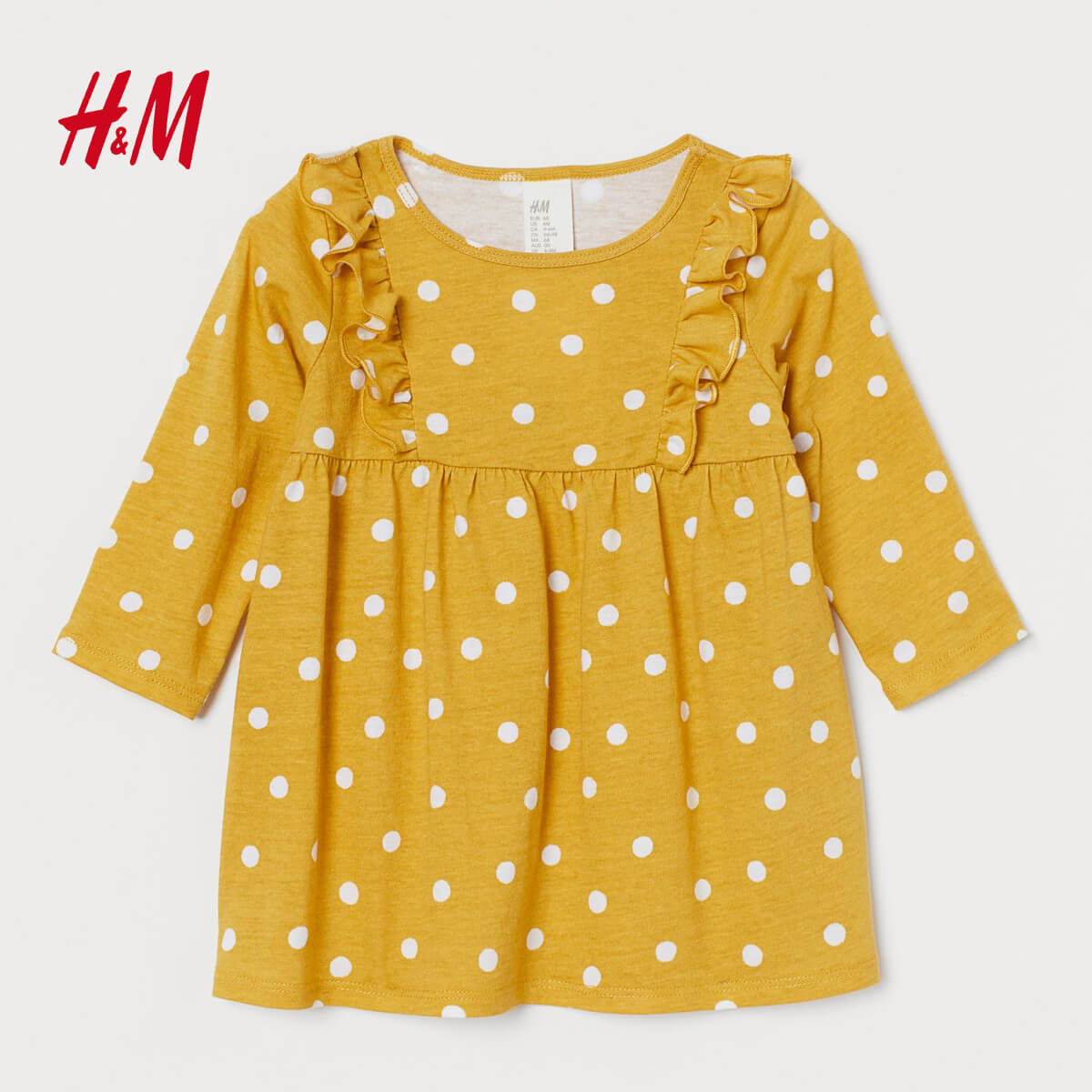 H&M YELLOW DOTTED RUFFLE TRIMMED JERSEY DRESS