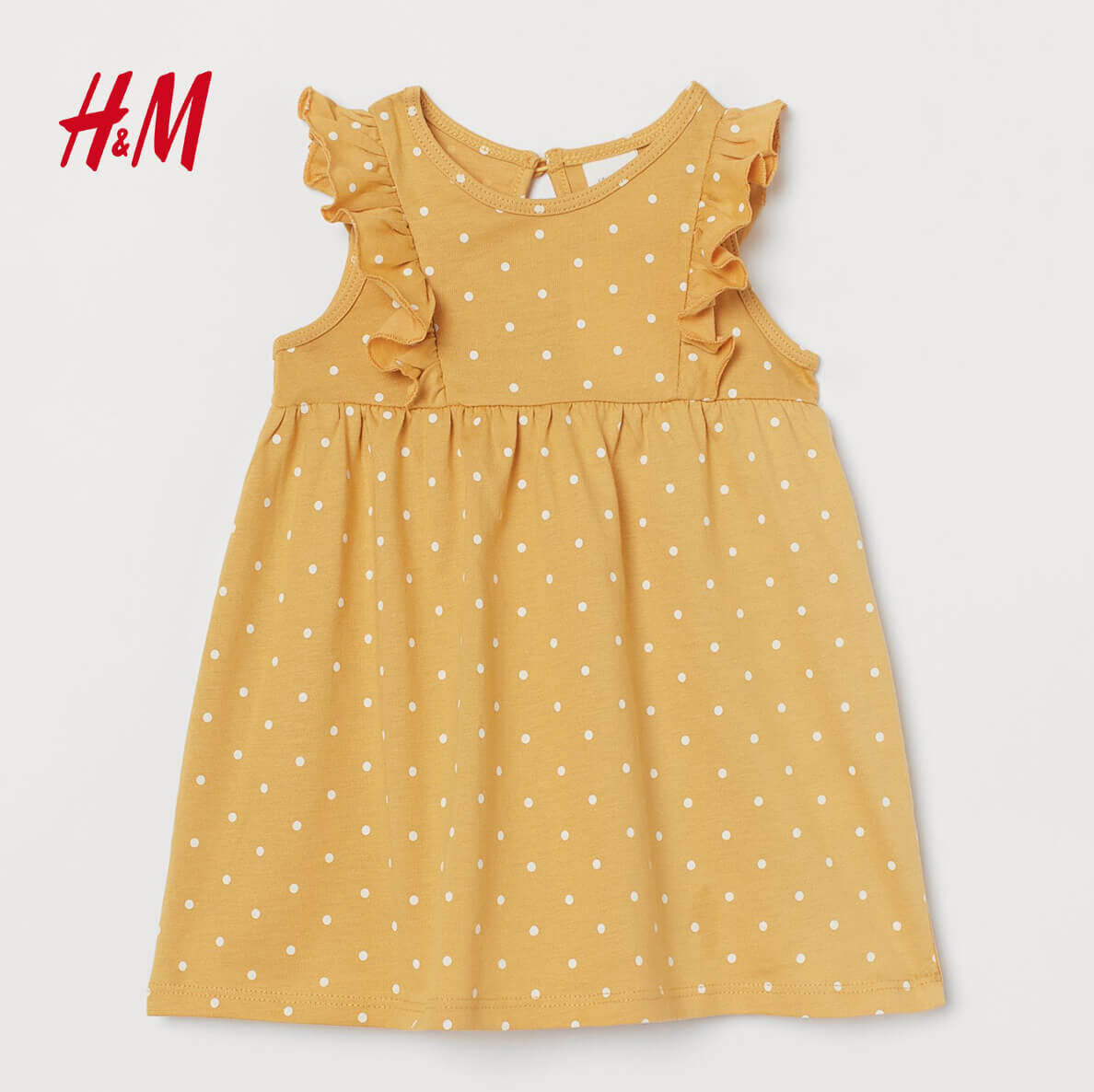 H&M YELLOW SPOTTED FLOUNCE TRIMMED JERSEY DRESS