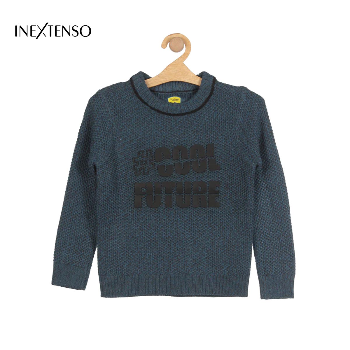 INEXTENSO BLUE CREW NECK PRINTED KNIT JUMPER