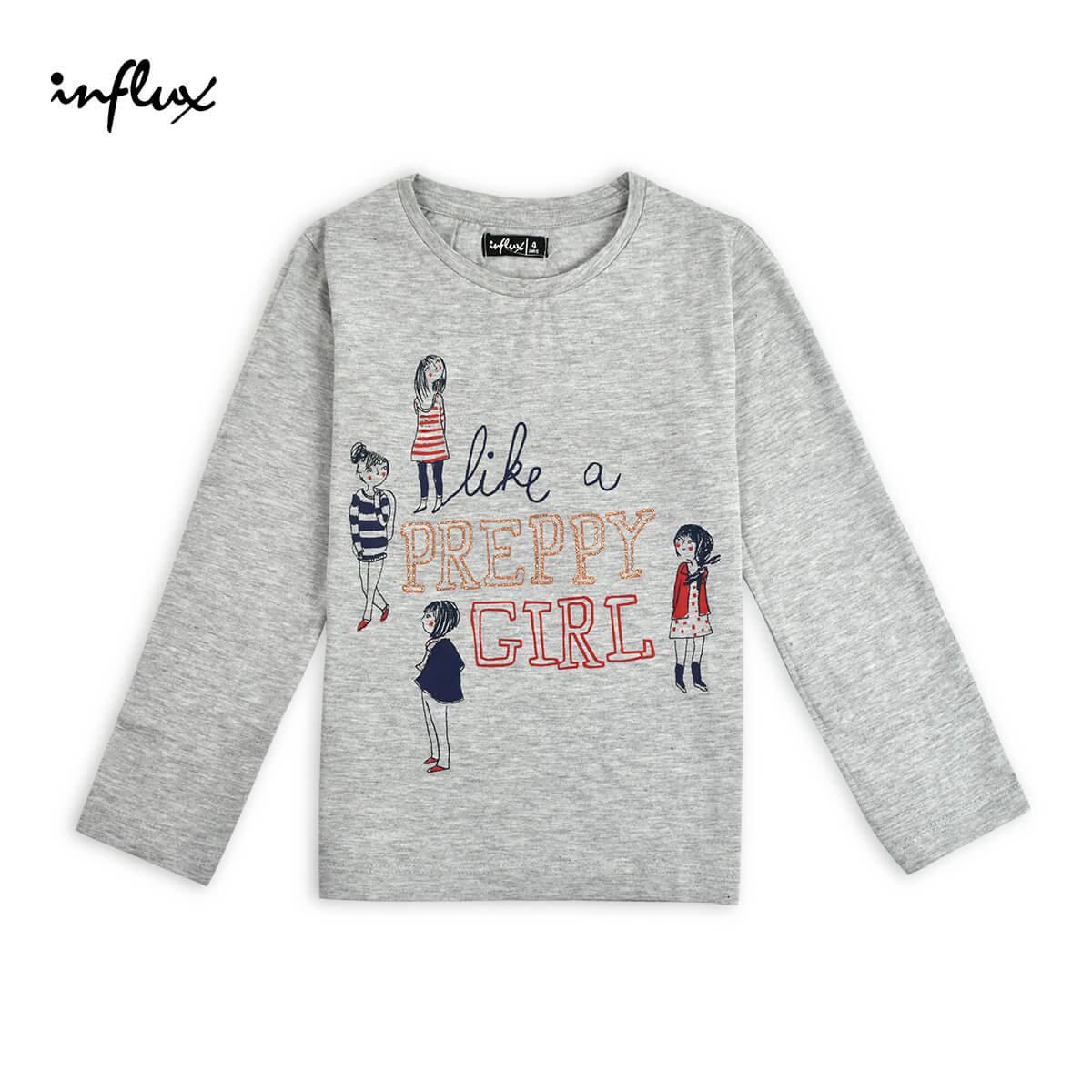 INFLUX GREY PREPPY GIRL LONG SLEEVE T-SHIRT