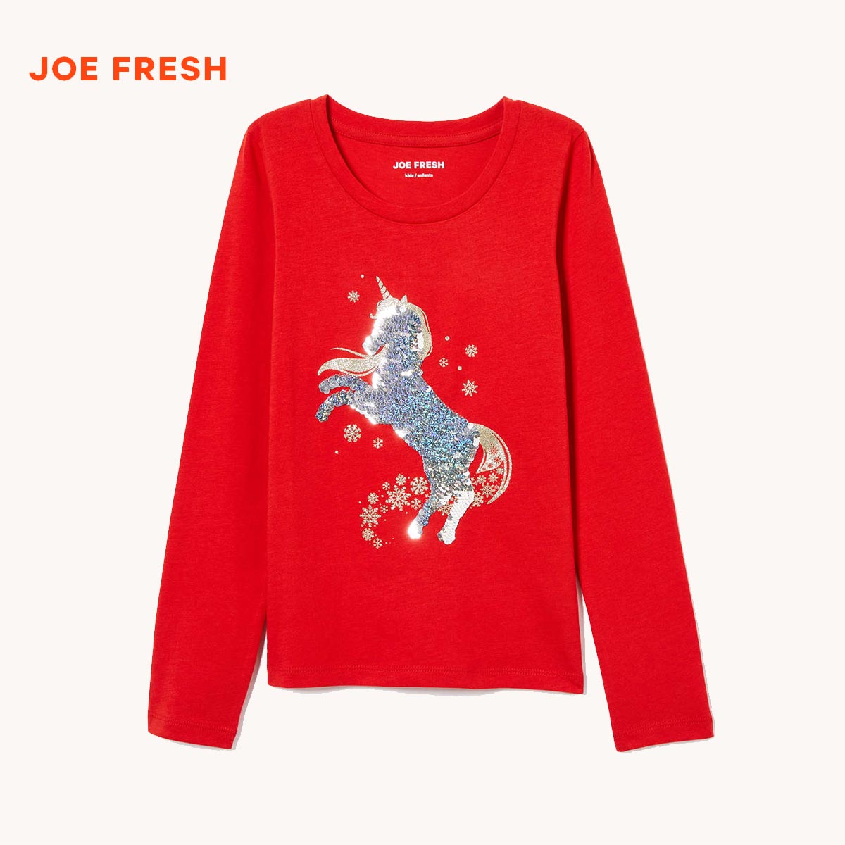 JOE FRESH GIRLS RED SEQUINED LONG SLEEVE T-SHIRT