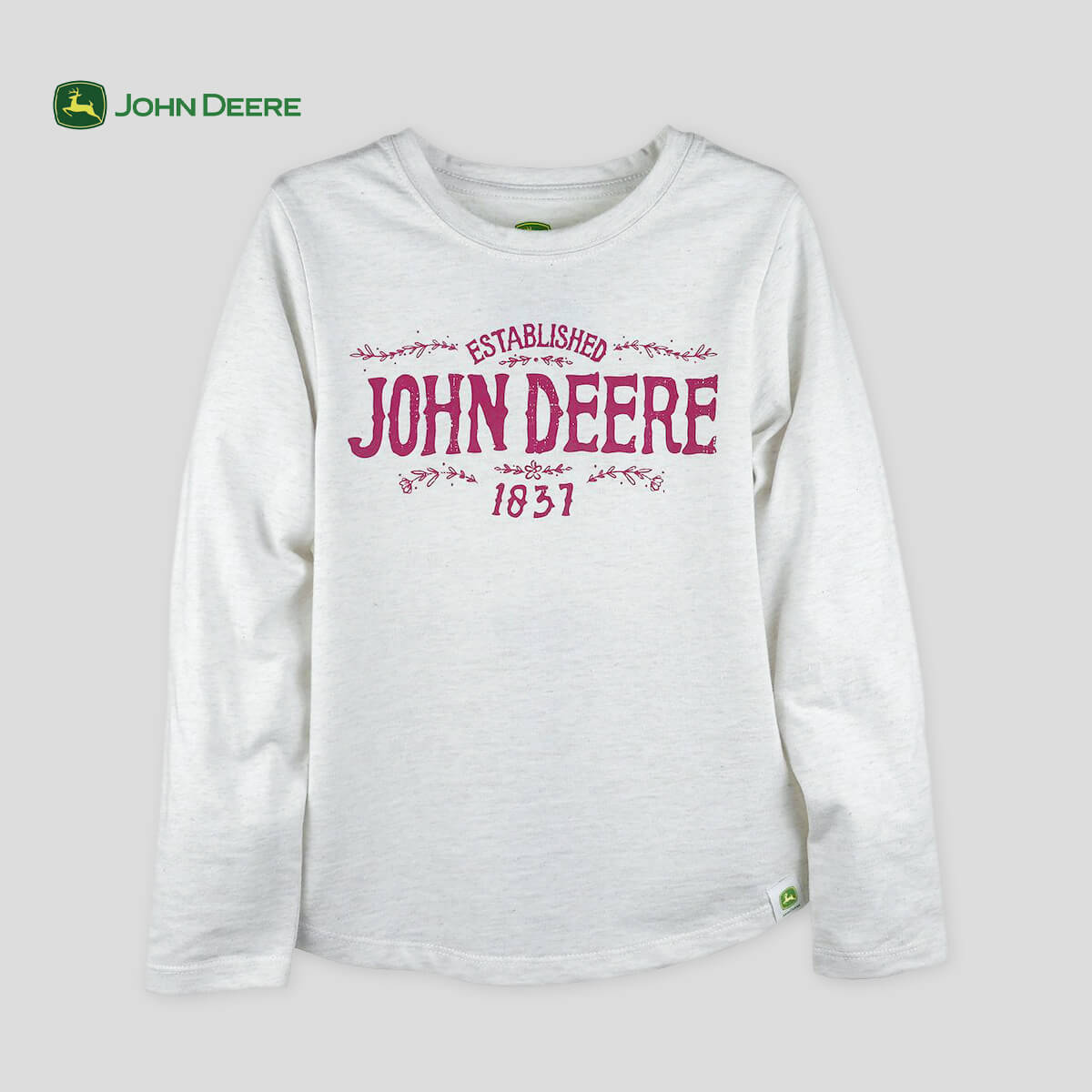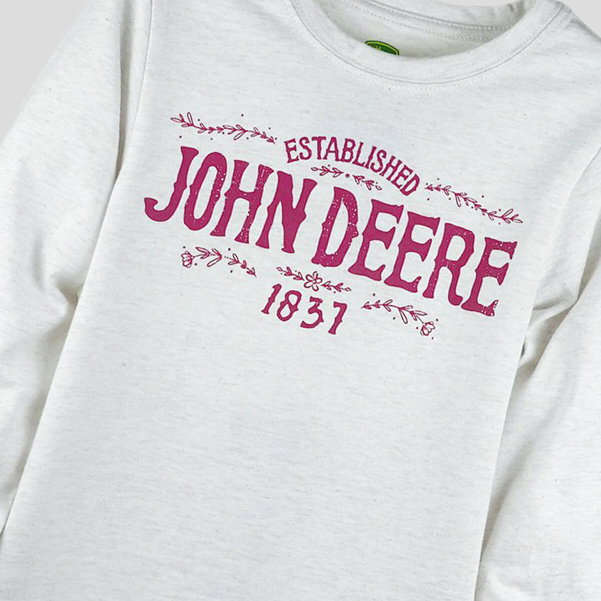 JOHN DEERE ESTABLISHED GIRLS WHITE HEATHER T-SHIRT