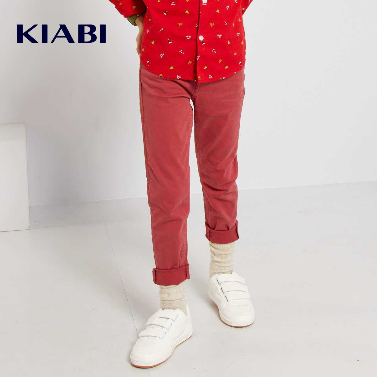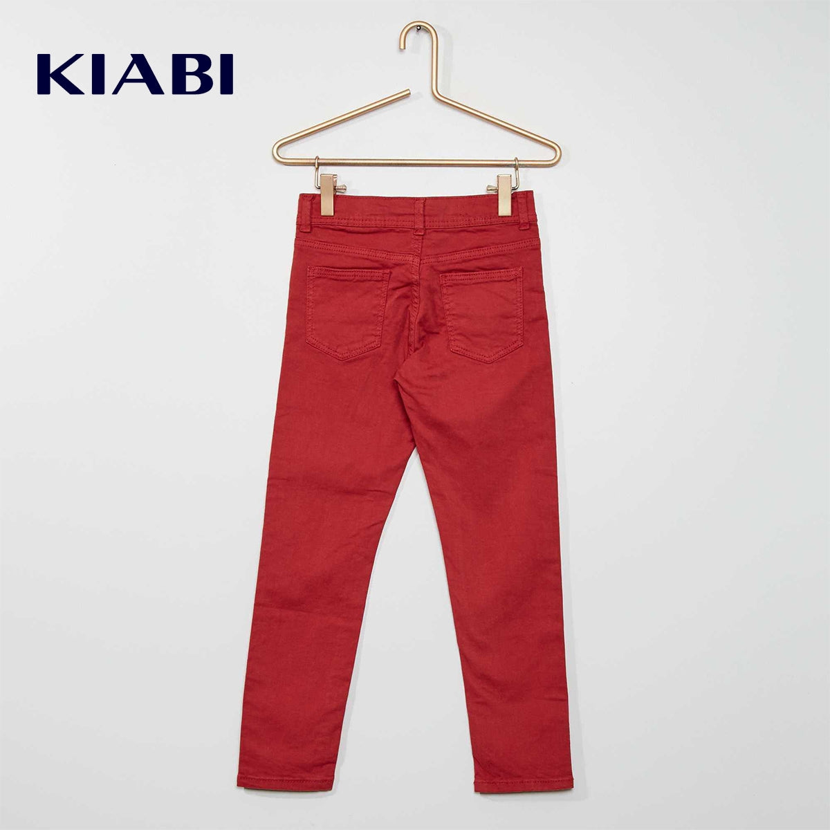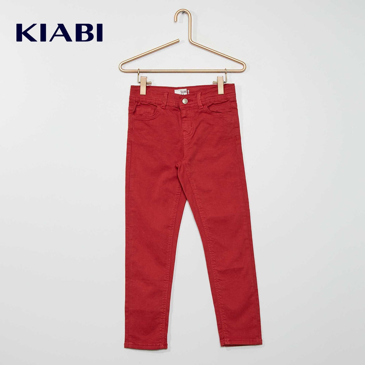 Description Slim fit trousers in a cut that's not too tight and not too loose: a wardrobe staple in a range of various colors! Slim-fit stretch trousers Organically-grown cotton-rich fabric 5-pocket cut Adjustable waist Age 3: fastened with 1 button, no zip Kiabi cares for the planet in style with its new 'eco-design' range, which is all about environmentally-friendly textiles.