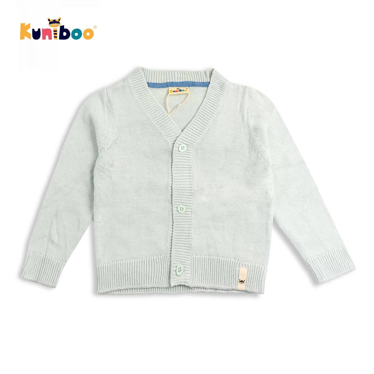 Sweater cardigan in knit fabric with V neck and long sleeves with ribbed hems and cuffs. Front opening.
