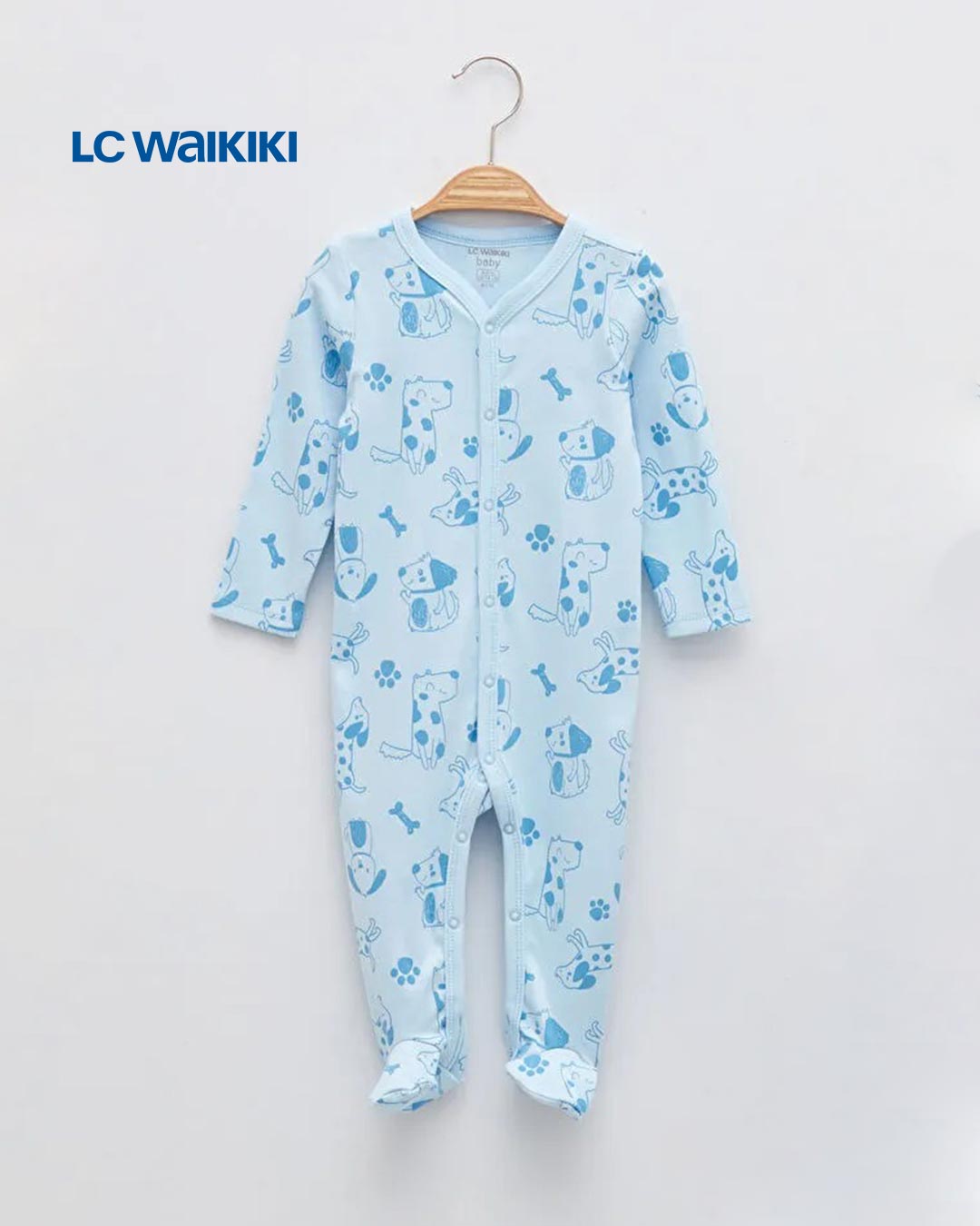 Keep your little one cozy and cute in this light blue romper, designed with playful all-over prints for extra charm. Crafted from soft cotton fabric, it’s gentle on baby’s skin and perfect for everyday comfort.