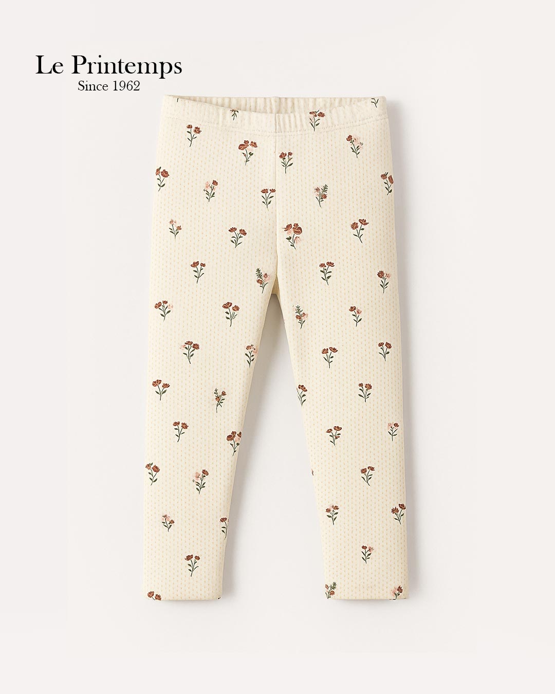 Keep your little one cozy and cute with these cream floral leggings, perfect for chilly days. Made from soft, stretchy fabric with a warm fleece lining, these leggings offer all-day comfort without compromising on style. The charming red and pink floral print adds a playful, feminine touch, while the full-length design ensures warmth from waist to ankle. Whether paired with a casual tee or layered under a dress, these leggings are a versatile must-have in any girl's winter wardrobe.
