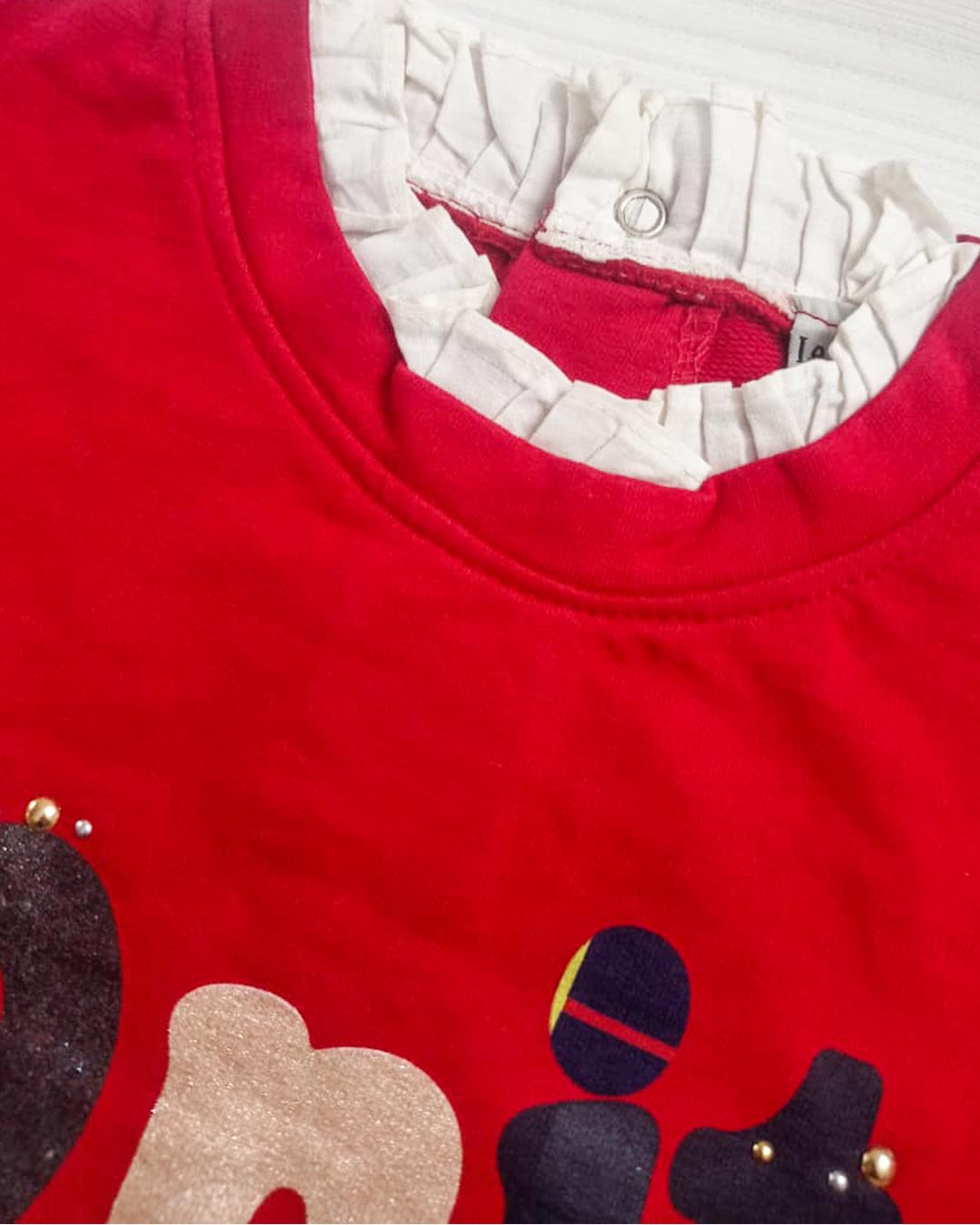 Add a touch of charm to your little one’s winter wardrobe with this adorable Bonita sweatshirt. Crafted from soft, cozy fabric, this sweatshirt keeps your child warm while ensuring all-day comfort. The vibrant red base is beautifully highlighted with a playful “Bonita” appliqué print, accented with subtle embellishments for a stylish, festive look.