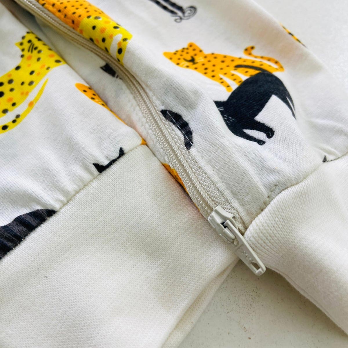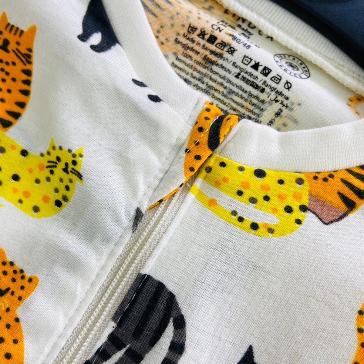 Organic Cotton Sleepsuit: Soft and gentle for your baby’s bedtime. Charming Print: Adorable all-over printed design. Easy Zip Closure: Through-front zip for quick dressing. 100% Organic Cotton: Made from high-quality, breathable fabric. Long Sleeve: Provides full coverage for warmth. Machine Washable: Wash at 60°C; line dry, and iron inside out. Crafted with care for your little one.